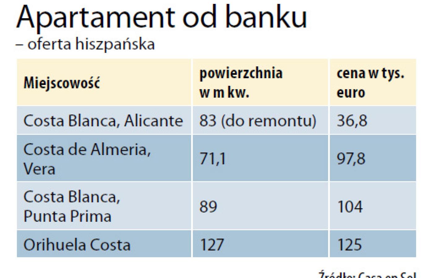 229-metrowy nowy apartament w El Albir na Costa Blanca, luksusowo wykończony, z pełnym wyposażeniem kuchni i dwóch łazienek, w budynku z całodobową ochroną, klimatyzacją, basenem, w odległości ok. 100 m od morza, można kupić za 295 tys. euro. W przeliczeniu na złote metr kosztuje około 5 tys. Apartament sprzedaje bank, który przejął nieruchomości zadłużonego dewelopera.