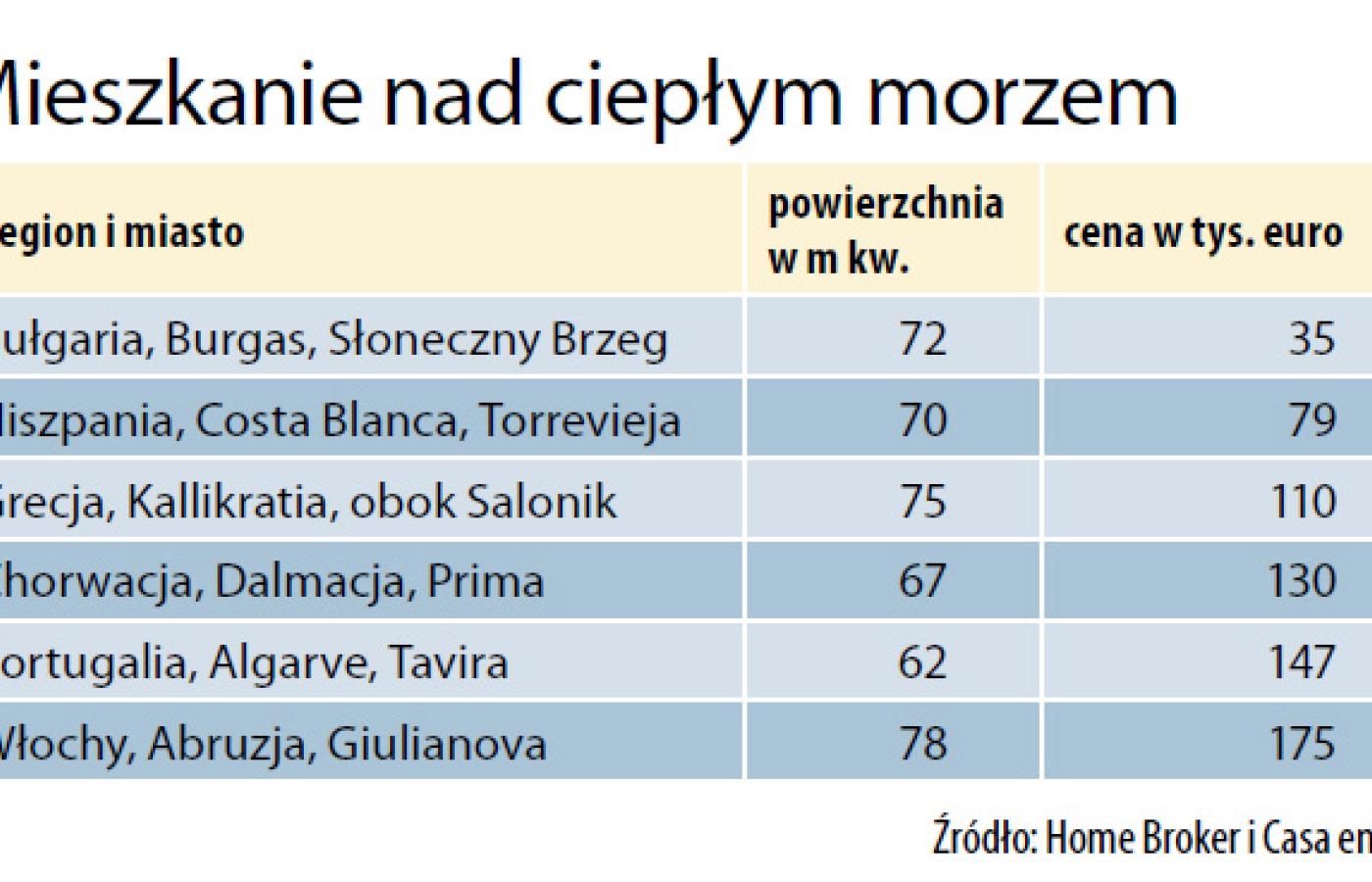 Tanio jest w Bułgarii. – Niewielkie mieszkanie nad morzem można tam kupić za równowartość 100–150 tys. zł – twierdzi Bartosz Turek z firmy Home Broker. Nadmorskie nieruchomości są tu o około 40 proc. tańsze niż trzy lata temu. Analitycy Home Brokera zachwalają je już kolejny rok. Bułgarią interesują się jednak niemal wyłącznie młodzi ludzie, dla których jest to fajne, tanie miejsce wakacyjnych wyjazdów. Nieruchomości tacy turyści nie kupują.