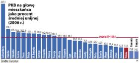 O jubileuszu Unii i o jej dylematach piszemy obszernie na s. 50. Natomiast niejako w charakterze pamiątkowego zdjęcia na 50-lecie europejskiej wspólnoty publikujemy aktualny unijny ranking PKB per capita. Nie jest niestety dla nas miły. Wyprzedzają nas kuzyni – Czesi, Słowacy i Węgrzy – z którymi lubiliśmy się porównywać, wyminęły nas państwa bałtyckie, nie wspominając o Słowenii czy Cyprze, które już grają w innej lidze. Cóż, gdyby w tym roku nie dołączyła Bułgaria i Rumunia, bylibyśmy czerwoną latarnią. W „starej” Unii tradycyjnie króluje Luksemburg (ale to raczej fenomen statystyczny), dalej: Irlandia, Holandia, Austria i Dania. Wzorcem z Sèvres stały się Włochy – 99,4 proc. unijnej średniej. Ciekawe, jak taki ranking będzie wyglądał za 10, a jak za 50 lat? Kto skorzysta, a kto prześpi szansę?