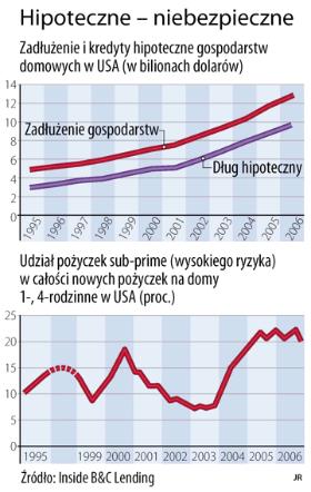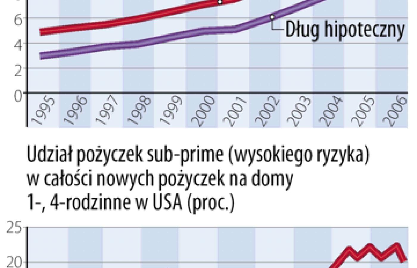 O tym, że następny wstrząs w amerykańskich finansach będzie wywołany przez niefrasobliwość i pazerność graczy na rynku nieruchomości, mówi się od dość dawna. Dopiero teraz pojawiły się jednak liczne dowody, że spora jego część już tkwi w głębokim kryzysie. Zdaniem części analityków sytuacja zaczyna przypominać to, co działo się dokładnie siedem lat temu na rynku firm technologicznych i później, gdy kraj zalała fala korporacyjnych skandali. Tak jak wówczas jednym z wątpliwych bohaterów sagi stał się potężny Enron, tak dziś jest nim na razie mało znana, ale bardzo agresywna New Century Financial, firma specjalizująca się w pożyczkach hipotecznych dla kredytobiorców o wątpliwej kondycji finansowej.