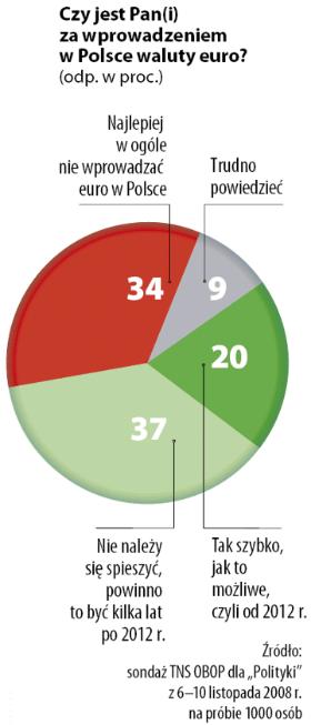 Wynik sondażu tłumaczy, skąd się mogło wziąć nagłe zawahanie rządu Donalda Tuska, jeśli chodzi o przeprowadzenie referendum w sprawie przyjęcia euro. Do tej pory problem dotyczył głównie tego, czy referendum będzie wiążące, ale teraz widać, że zasadnicza kwestia to jego wynik. Jak widać z naszego sondażu, aż 70 proc. Polaków nie życzy sobie zamiany złotego na euro albo w ogóle, albo też dopuszcza taką możliwość znacznie później, niż chce tego rząd. To może oznaczać, że konieczna będzie zasadnicza zmiana strategii przyjęcia euro, ponieważ nawet niewiążące z powodu niskiej frekwencji referendum, w którym przewagę osiągną przeciwnicy europejskiej waluty, będzie z pewnością dla PiS argumentem, aby nie zmieniać konstytucji. MJ
