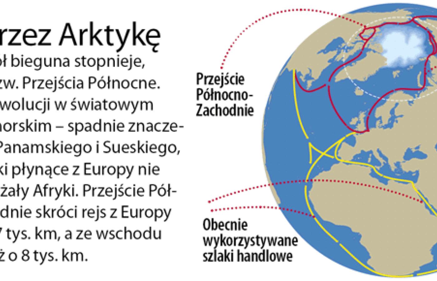 Ze wszystkich regionów świata ocieplenie klimatu najbardziej zmieni Arktykę. Cofający się lód odsłoni nowe możliwości żeglugi i handlu. To nie ciekawostka geograficzna, zwłaszcza w epoce drogiego paliwa: tzw. Przejściem Północno-Zachodnim rejs z Europy do Japonii jest krótszy aż o 7 tys. km od drogi dookoła Afryki. Jest także drugie przejście, powyżej Syberii – Przejście Północno-Wschodnie. „Tego lata po raz pierwszy w znanej historii oba przejścia północne były jednocześnie wolne od lodu” – ogłosił Pablo Clemente-Colon, klimatolog z amerykańskiego centrum badania lodu.