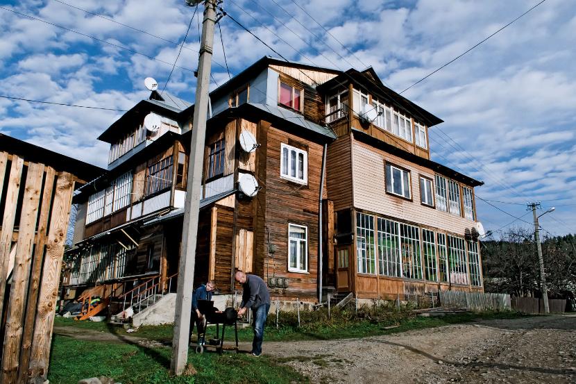 Jedną z najstarszych mieszkanek byłego pensjonatu jest Wala Nowgorodzka. Przyjechała do Worochty spod Briańska w 1959 r., gdy miała 22 lata, za siostrą, której męża skierowali do pracy w kombinacie drzewnym. Zamieszkała na parterze. Z drugiej strony budynku był klub i potańcówki. Tam poznała przyszłego męża. Jak on tańczył! W duchu błagała, żeby ją poprosił choć na jeden taniec. Podszedł. I Wala już go nie wypuściła... – Umarł w 1985 r. Jestem sama, ale mi tu dobrze. Z nikim się nie kłócę. Ale żyję już tylko dla wnuków – Wala ociera łzy.