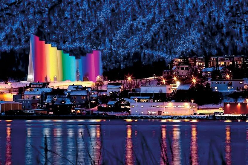 M/S „Trollfjord” tej samej nocy po pokazie dopływa do Tromsø, obecnie największego miasta północnej Norwegii. Na ląd schodzi kilkanaście osób i idzie do domów. Na turystów czekają dwa autobusy, które zawiozą ich na koncert specjalnie organizowany w Ishavskatedralen, katedrze arktycznej, architektonicznym symbolu miasta. Mieszkańcy chodzą tam na koncerty w bardziej dogodnych godzinach niż północ, ale hurtigruta przypływa o tej samej porze od lat i to ląd musi się do niej dostosować.