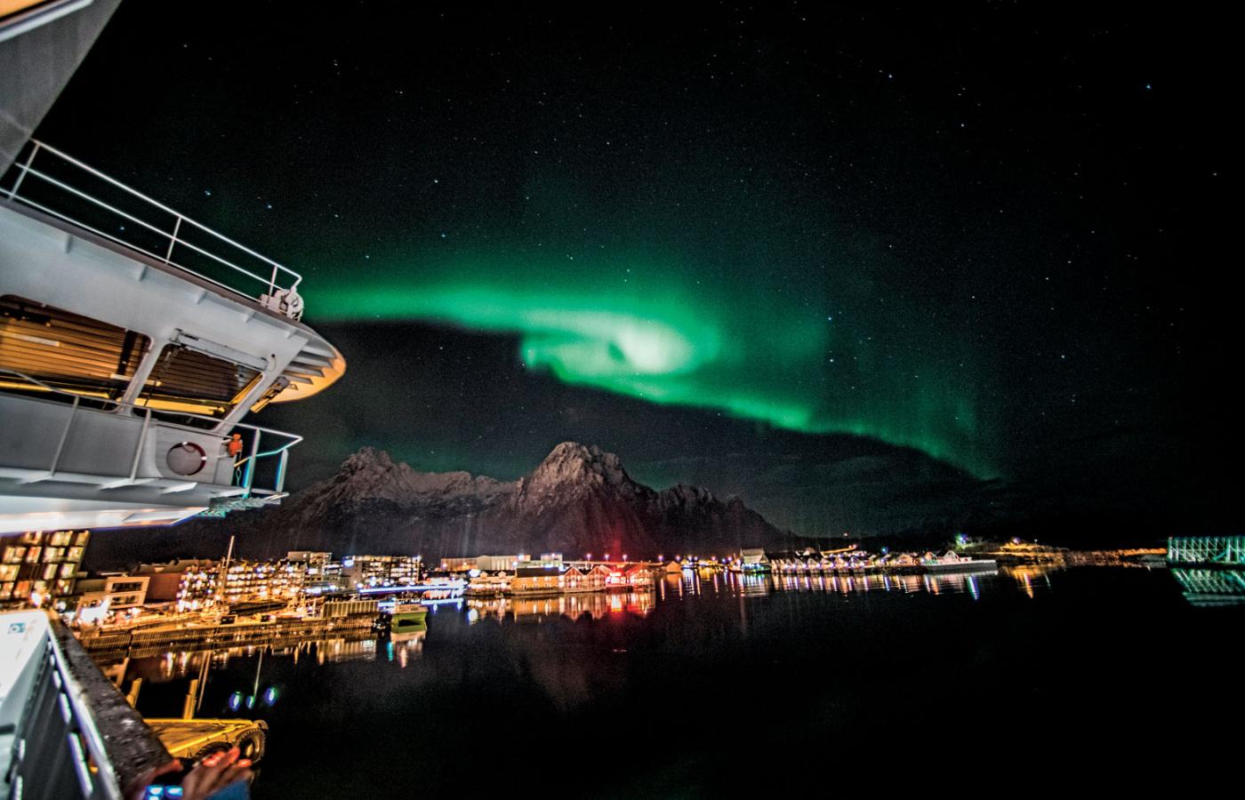 M/S „Trollfjord” zbudowany w 2001 r. może pomieścić 822 osoby. Teraz na pokładzie jest ponad 400 pasażerów z 15 krajów, poza Europą m.in. z Nowej Zelandii i RPA. Komunikaty ogłaszane są po norwesku, angielsku i niemiecku. Każdego dnia pasażerowie mają możliwość zejść na ląd i uczestniczyć w dodatkowych zajęciach: od jazdy psimi zaprzęgami po spotkanie z kulturą rdzennych ludzi Północy – Saamów. Ci w kawiarni na czwartym pokładzie śmieją się, że kiedyś do głowy by im nie przyszło, żeby wykupić na przykład wycieczkę na Przylądek Północny, bo sami mieszkali na skałach, więc po co mieli jeszcze oglądać inną. Co z tego, że najbardziej północną.