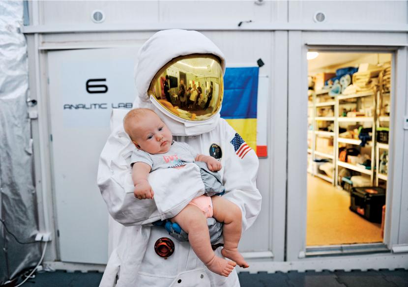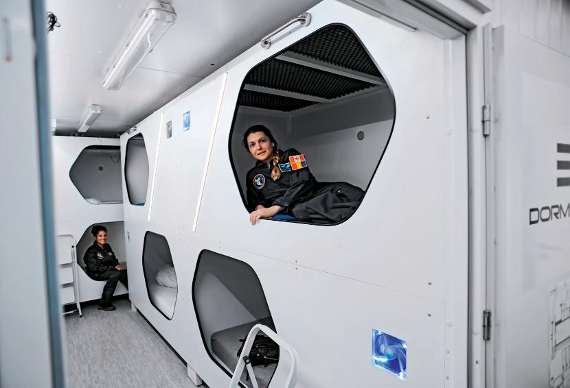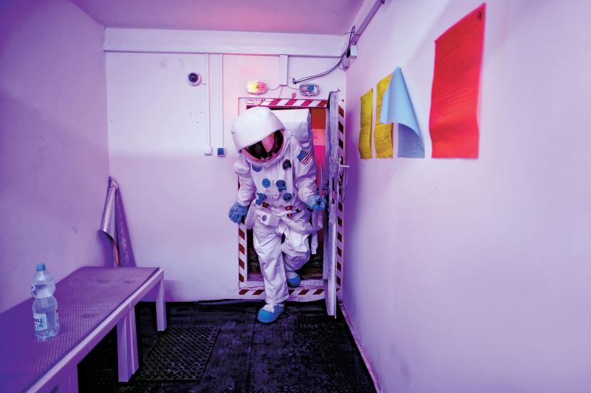Lecący mają do dyspozycji pokład z modułem sypialnianym, kuchennym, laboratoryjnym, rekreacyjnym oraz higienicznym. Mogą (pod warunkiem że założą skafander) wyjść na kosmiczny spacer. W zależności od misji: na prawo Księżyc, na lewo Mars, usypane z 400 ton podarowanego bazaltu. Trzeba pochwalić ludzkość, że rekonesans odbywa humanitarnie. Zanim staje na nie swojej ziemi, skrupulatnie się wyjaławia, by nie zainfekować sobą ewentualnych obcych żyć.