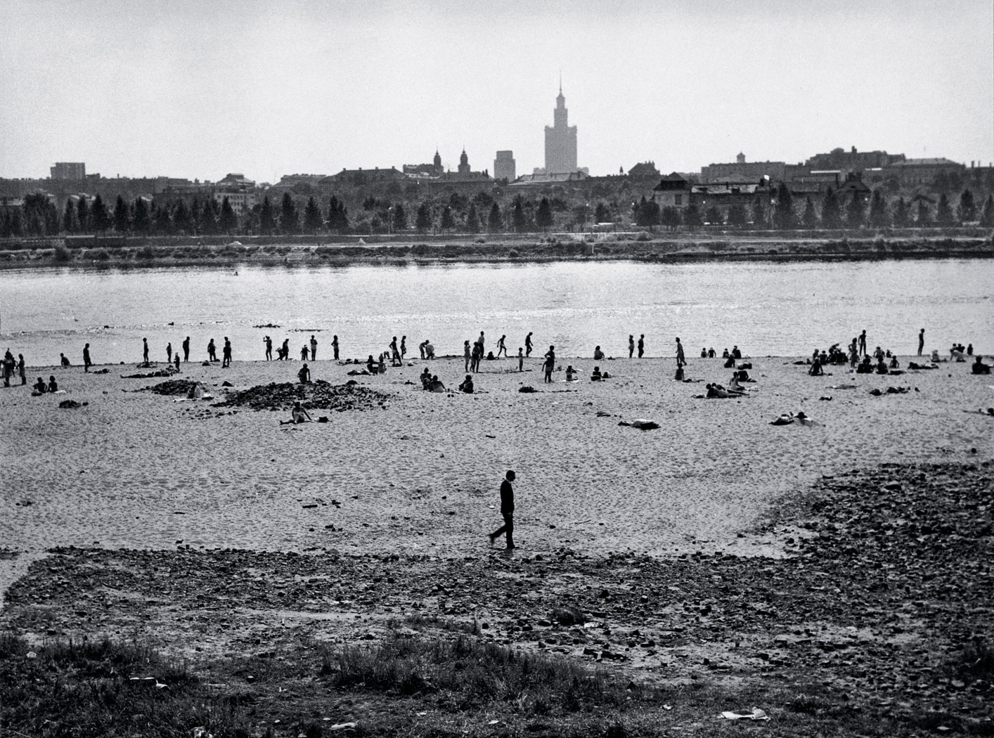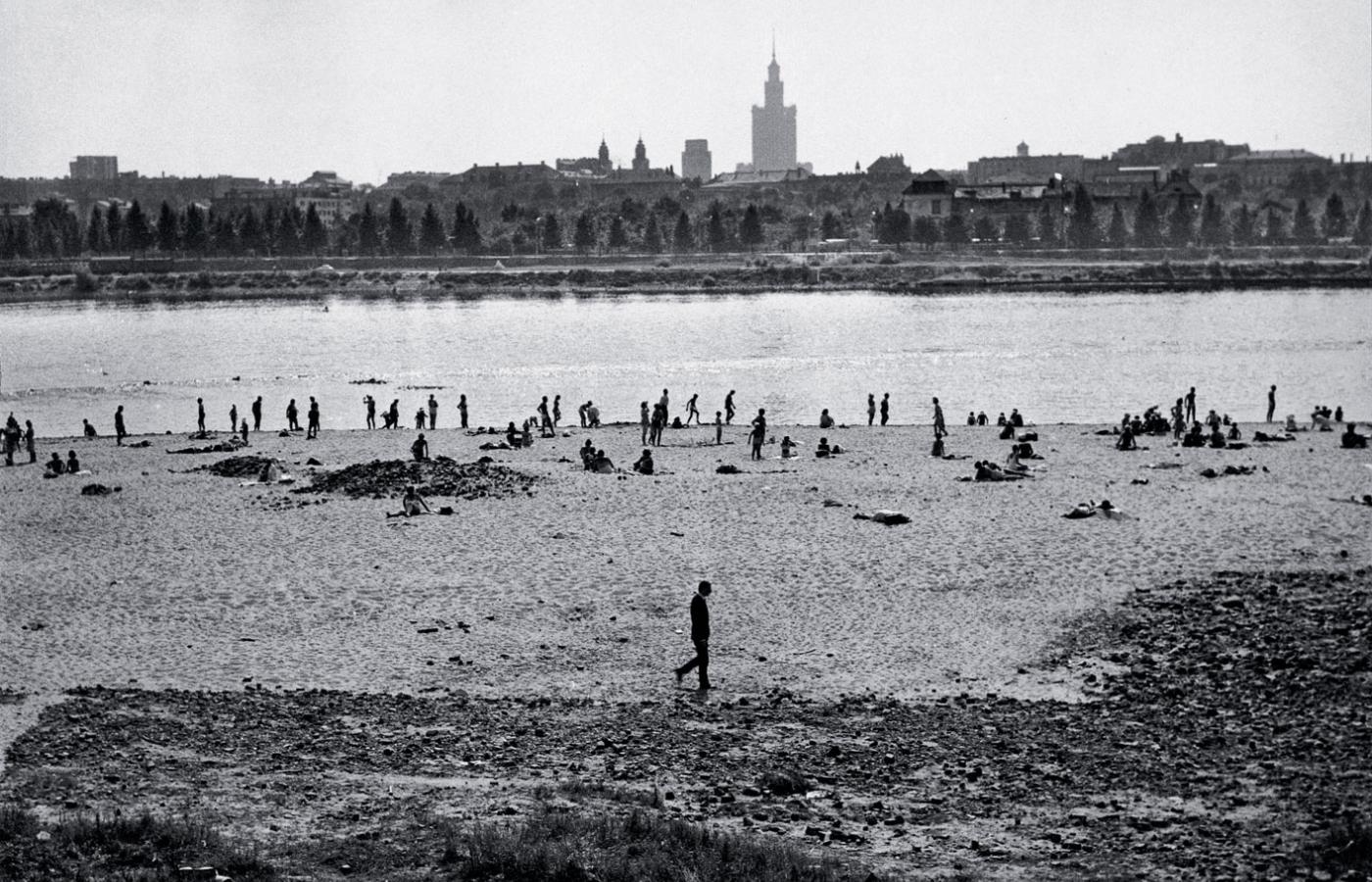 Ubrany w czarny garnitur Sławomir Mrożek, zamyślony spaceruje samotnie po warszawskiej plaży. W tle tłum zadowolonych plażowiczów i monumentalna, jakby odrealniona bryła Pałacu Kultury. Takie zdjęcie ukazało się w grudniowym numerze „Polski” z 1962 r. Kilka miesięcy później twórca „Tanga” na stałe wyemigrował z kraju.