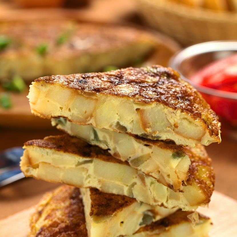 Oto królowa hiszpańskich przystawek i tapas. Idealna jako przekąska albo dodatek do dania głównego, choć tak sycąca, że może stanowić samodzielny obiad. Tortilla to odmiana jajecznego omletu z dodatkiem ziemniaków i innych składników. Są wersje z cebulą lub ze szpinakiem, z fasolą bądź z grzybami. Zawsze smażona jest na oliwie.