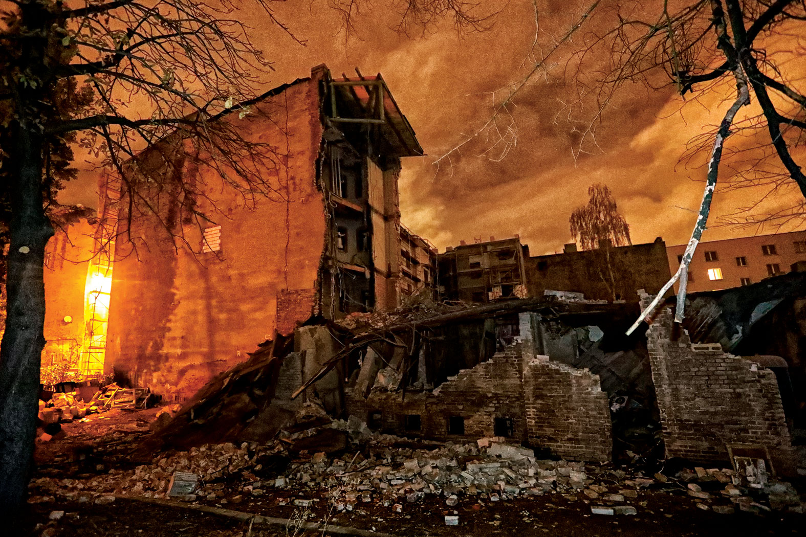 Budynek, wpisany do rejestru zabytków, przechodził renowację finansowaną z budżetu miasta i środków unijnych. – Zbiegli się robotnicy, krzyczą: Janek, żyjesz?! Karetka przyjechała, straż z psami do poszukiwania w gruzach. Nikogo nie znaleźli. A tu przecież ci robotnicy, ludzie z psami chodzą. Bezdomni śpią w komórkach, co teraz zawalone – ciągnie Podsiadło. Pod gruzem legła linia energetyczna, dwa tygodnie siedzieli z żoną przy świeczkach. Tak jak sąsiedzi z trzech zamieszkanych wciąż lokali w ich kamienicy, rocznik 1900. Pozostali pomarli albo zostali wykwaterowani. Na klatkach schodowych wiszą ogłoszenia podpisane przez zawiadującego budynkiem zarządcę sądowego.