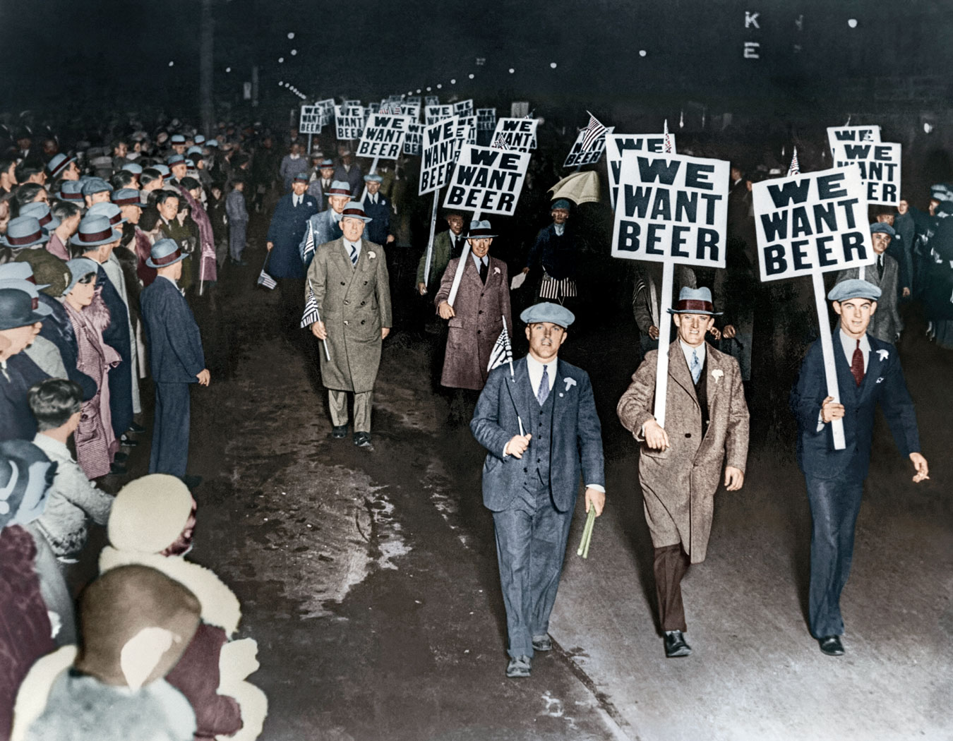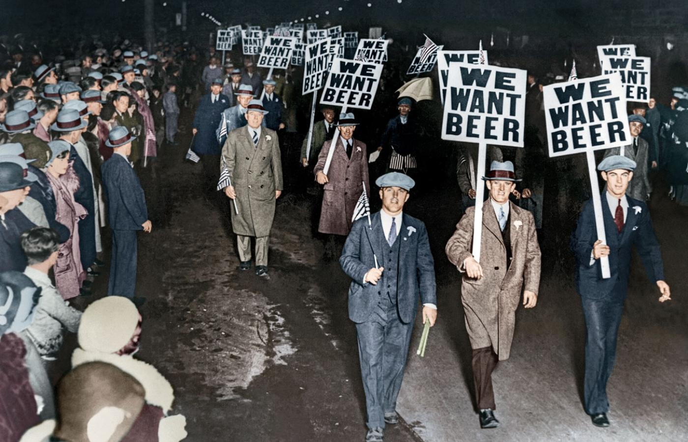 Alkohol nie miał specjalnie złej opinii, a jego związek z polityką był w Ameryce oczywisty. Kiedy 24-letni George Waszyngton, późniejszy ojciec narodu, pierwszy raz startował w wyborach na urząd w Wirginii i przegrał, to uznał, że przyczyną porażki była zbyt mała ilość trunku oferowanego wyborcom. W kolejnych wyborach rozdał po dwa litry na pozyskany głos. Tenże Waszyngton, już jako wojskowy, miał destylarnię na swej farmie, a żołnierzy pojono dzienną racją czterech uncji whisky. Średnia krajowa, skrupulatnie wyliczona przez historyków, była zatrważająca: 1,7 butelki na tydzień, wliczając w to niemowlęta i abstynentów.