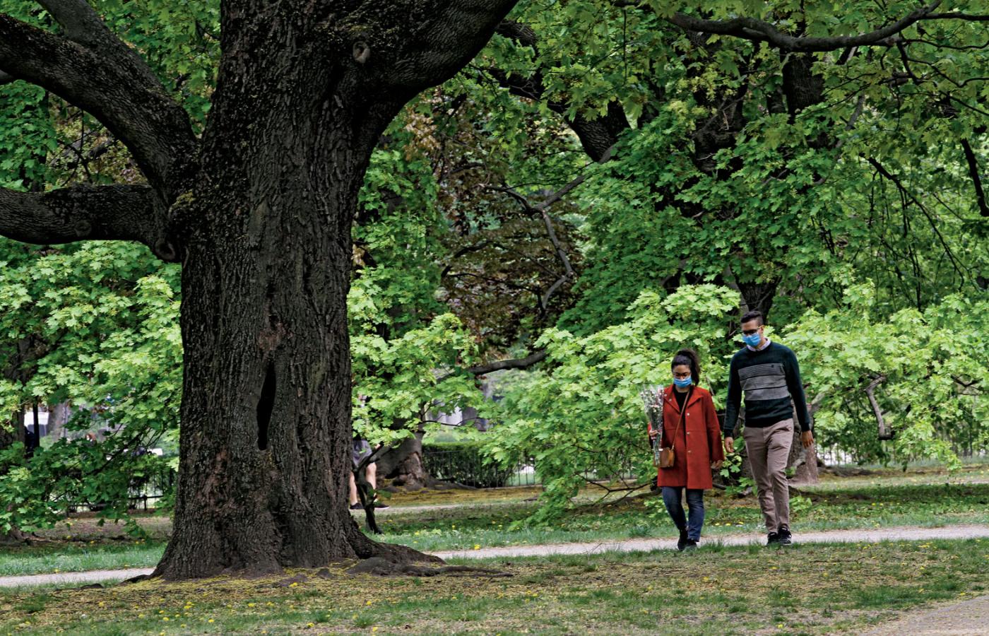 Gdzie dendrolog przez Ogród Saski i nie może się nadziwić, jak dobrze służy drzewom chwilowa izolacja od spacerowiczów. Podczas gdy warszawiacy w strachu, drzewa nabrały wigoru. Od dekad przegrywają w starciu z ludźmi, mimo znaczącej liczebnej przewagi. Otóż – jak rachuje nasz dendrolog – przy założeniu, że drzew jest dziewięć milionów, na jednego mieszczucha przypada więcej niż cztery. Taki londyńczyk, wiedeńczyk czy paryżanin może zzielenieć z zazdrości. Zieleń, zajmując aż 30 tys. ha, stanowi 45 proc. powierzchni stolicy.