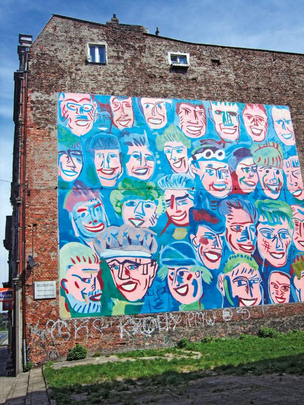 Spod podobizny legendarnego jazzmana droga wiedzie już • wprost do Łodzi. Jej poświęcimy tym razem najmniej miejsca. O łódzkich muralach rozpisywano się już bowiem wielokrotnie. Dla miłośników, a może używając zgrabnego neologizmu, muraloholików punkt obowiązkowy. Miasto, któremu pewnie najbliżej do miana muralowej stolicy Polski. Festiwal Urban Forms uczynił Łódź prawdziwą mekką dla wielbicieli street artu. Czeka tam ponad setka gigantycznych prac.