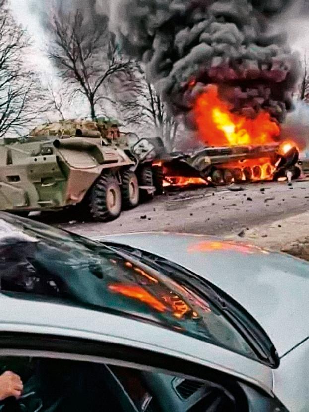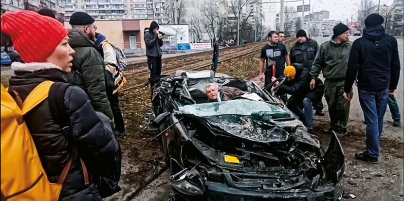 Niektóre z poniższych kadrów są szokujące, jak zdjęcie kierowcy w samochodzie rozjechanym przez rosyjski transporter. Człowiek cudem przeżył, ale niech to zdjęcie uzmysławia wszystkim, jak brutalni potrafią być najeźdźcy.