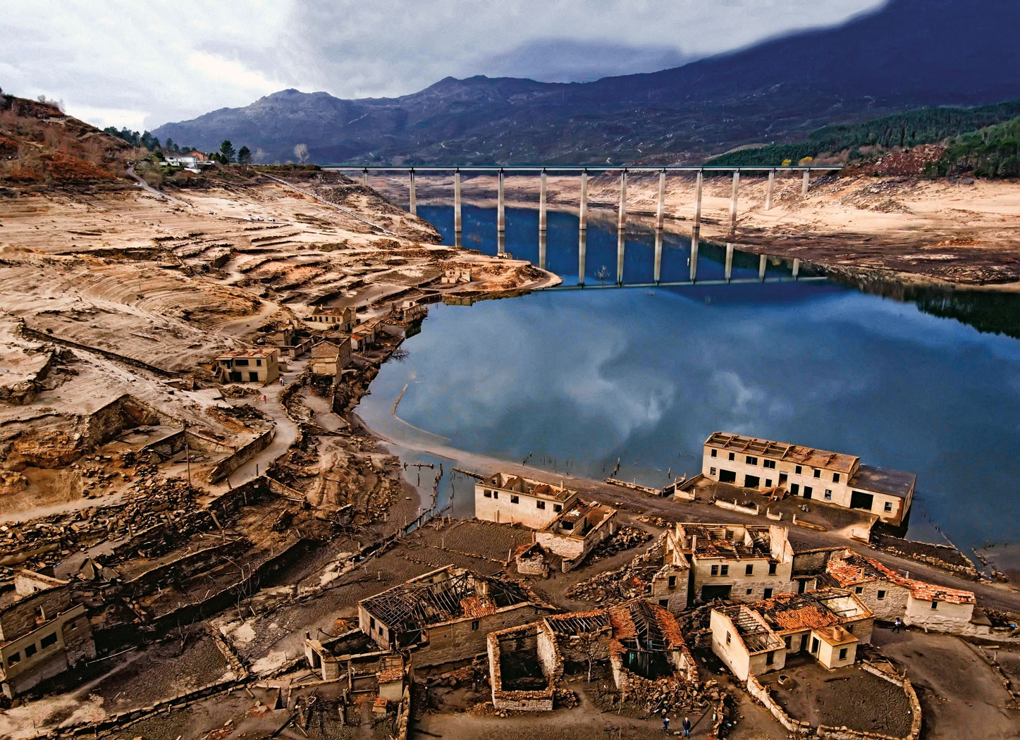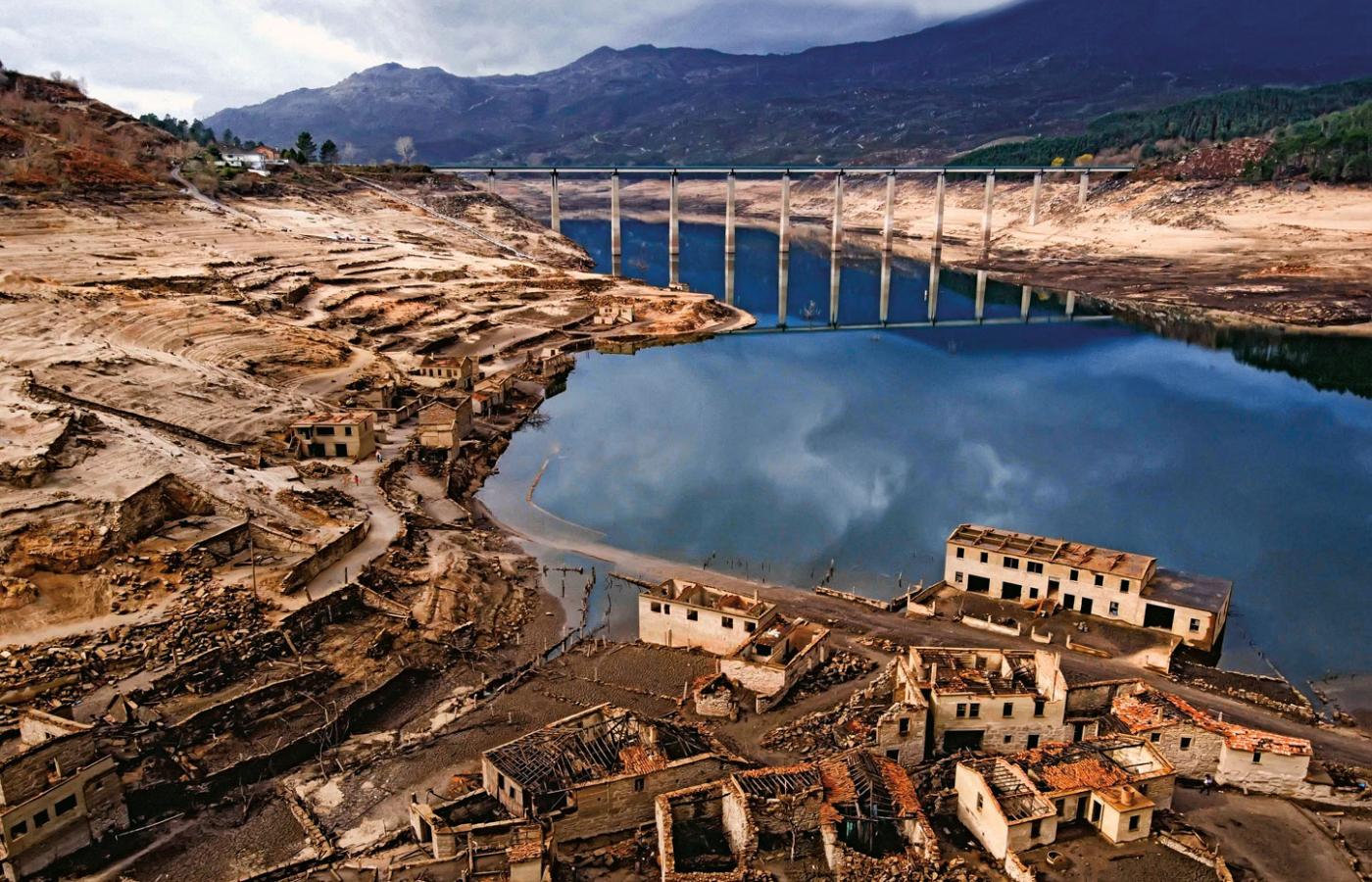 Fragment zatopionej wioski Aceredo, którą odsłonił niski stan wody w zbiorniku Alto Lindoso, Hiszpania. Fragment zatopionej wioski Aceredo, którą odsłonił niski stan wody w zbiorniku Alto Lindoso, Hiszpania. Carmelo Alen/AFP / East News