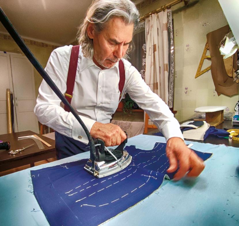W poznańskiej pracowni Karola Rzeszutko, kontynuatora rodzinnych tradycji w czwartym pokoleniu, między półkami wypełnionymi tkaninami, produktami, akcesoriami i literaturą przedmiotu wisi oprawiona w rzeźbioną ramę tablica, a na niej krawieckie wyzwanie: podstawowe typy figur przegiętych oraz figur pochyłych. To tylko wstęp do tego, jak indywidualne predyspozycje, charakter pracy, tryb życia deformują ludzkie ciało. Sebastian Żukowski wertuje ksero książki „Krój odzieży męskiej” (niewznawianej, bo nie ma na nią popytu; inna sprawa, że zawarte w niej wskazówki są ponadczasowe).