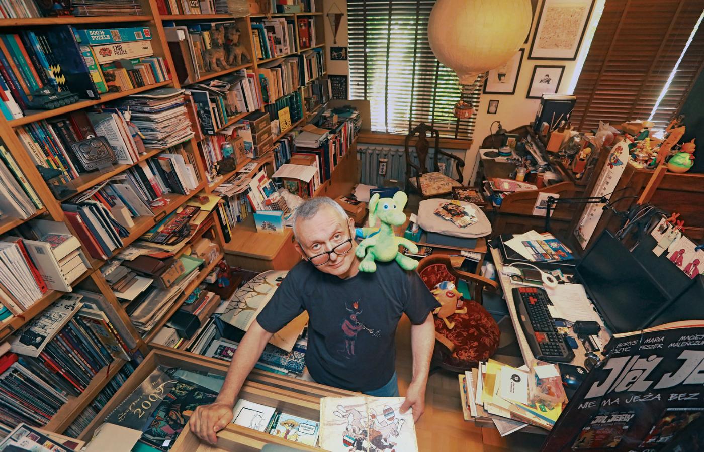 W pokoju obok największa w Polsce kolekcja komiksu. Cisza. W szufladach autorskie plansze z rysunkowymi bohaterami wielu pokoleń. Za szkłem śpią z otwartymi oczami postaci z animowanych bajek państw Układu Warszawskiego.