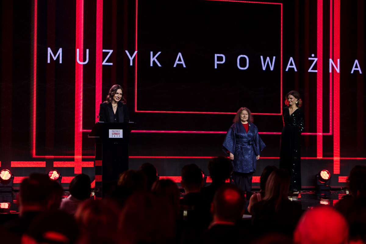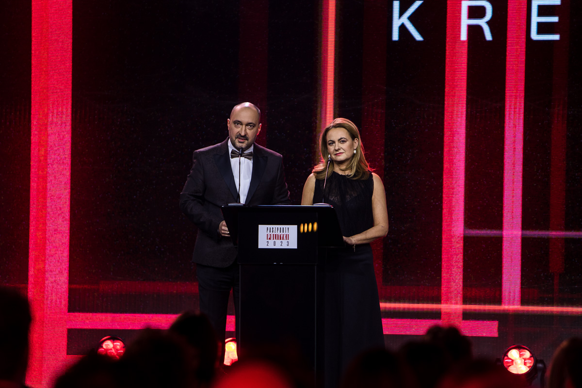 W tym roku imprezę poprowadził pierwszy raz nie jeden duet, ale dwa: redaktor naczelny naszego tygodnika Jerzy Baczyński i Grażyna Torbicka (tradycyjnie od lat) oraz dziennikarka TVN Gabi Drzewiecka i szef działy kultury „Polityki” Bartek Chaciński (debiutujący w tej roli). Do gospodarzy wieczoru należałoby też zaliczyć Teatr Improwizowany Klancyk. I klarnecistę Pawła Szamburskiego, nominowanego do Paszportów w 2021 r., który zadbał o muzyczną oprawę wieczoru. Nieco był schowany, ale dobrze słyszalny.