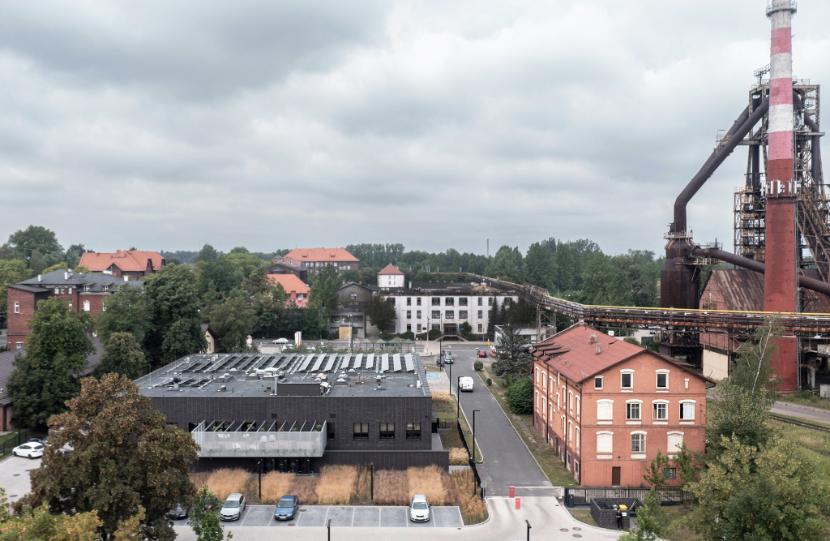 Rewitalizacja dawnej stołówki Huty Pokój na potrzeby ING w Rudzie Śląskiej. Projekt: Małeccy biuro projektowe.