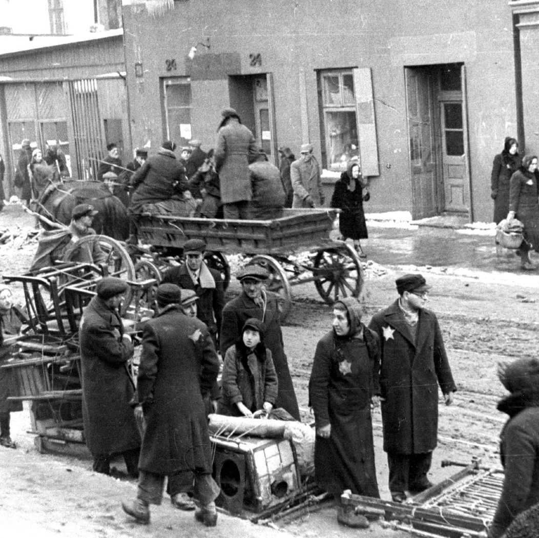 Ogłoszenie decyzji o utworzeniu getta oznaczało dla tysięcy łodzian konieczność zmiany miejsca zamieszkania. Przymusowe przesiedlenia Żydów na teren tworzonego getta w lutym i marcu 1940 r. zostały uwiecznione na fotografiach wykonanych przez Białkowskiego. Są one wyjątkowe z kilku względów – wykonał je nie Żyd, ale jednocześnie nie sprawca. Co więcej, pokazują one miasto niepodzielone. W ulicznym tłumie można rozpoznać zarówno Żydów, jak i nie-Żydów; ci drudzy nie mają przyszytych do ubrań gwiazd Dawida. Setki osób przemieszczają się ulicami, pchając, niosąc i przewożąc konno albo na saniach dobytek swojego życia.