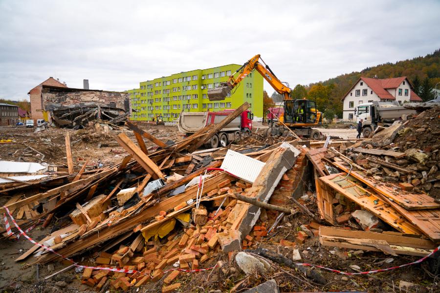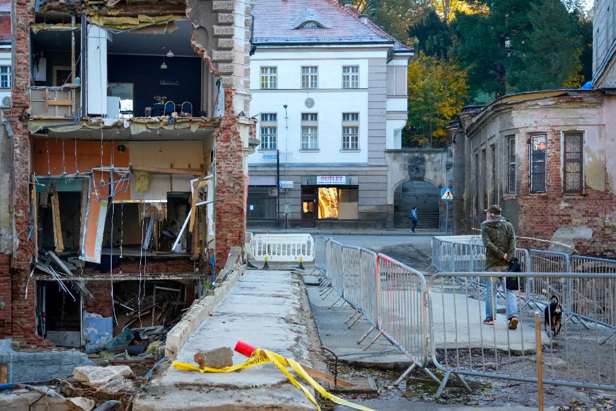 We wrześniu, tuż po powodzi, w tych samych miejscach więcej się widziało uśmiechu. Dokoła ruiny, a ludzie serdeczni, pomocni, zapracowani. Niesieni adrenaliną, jak sami mówili. Szczęśliwi, że przeżyli. Teraz zimno i wilgotno, nocą temperatura poniżej zera, szybko przychodzi noc. Na murach ogłoszenia o pomocy psychologicznej: dla dzieci i dorosłych, nocnej i dziennej.