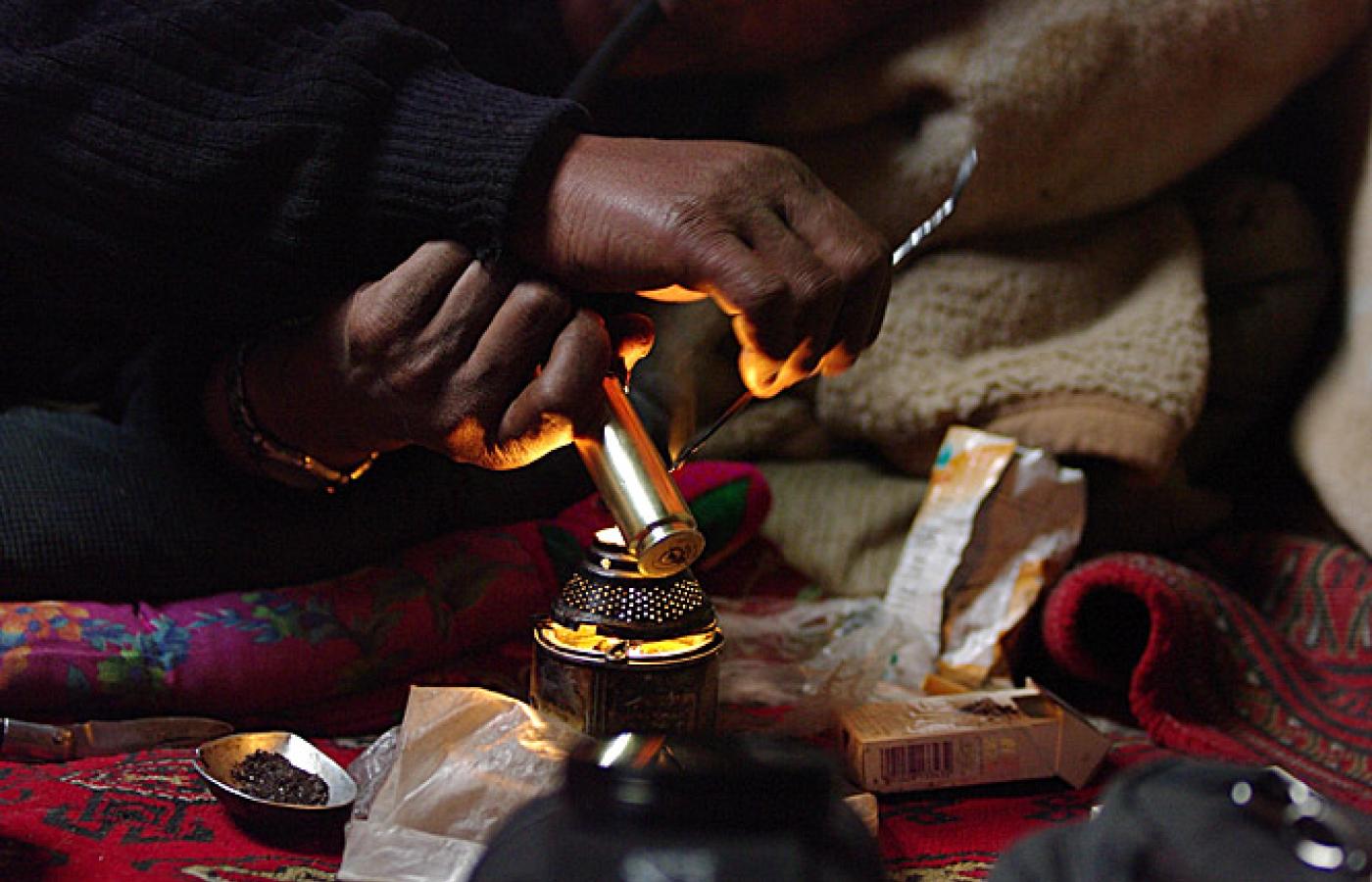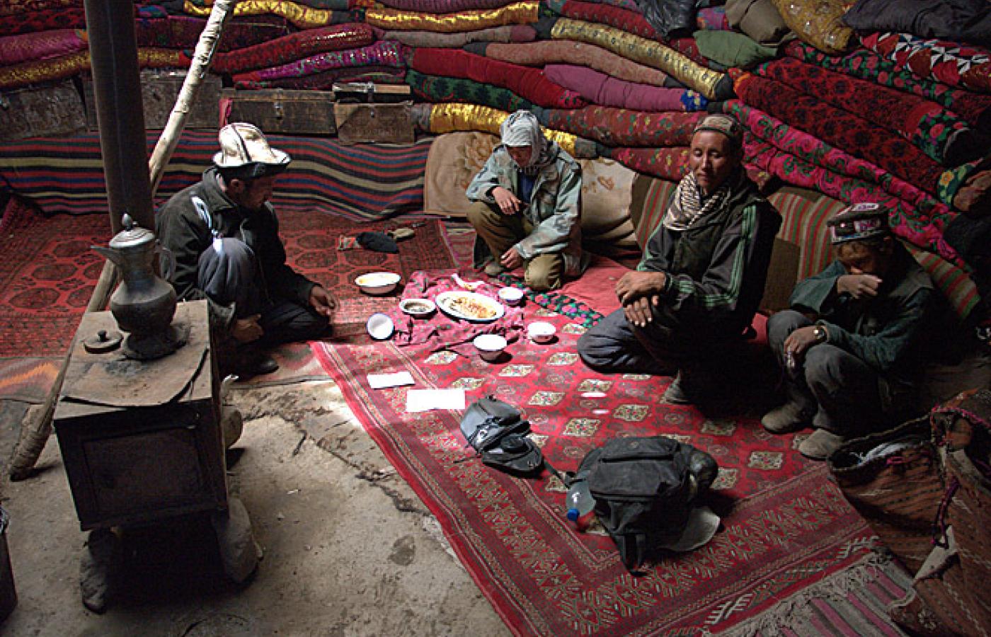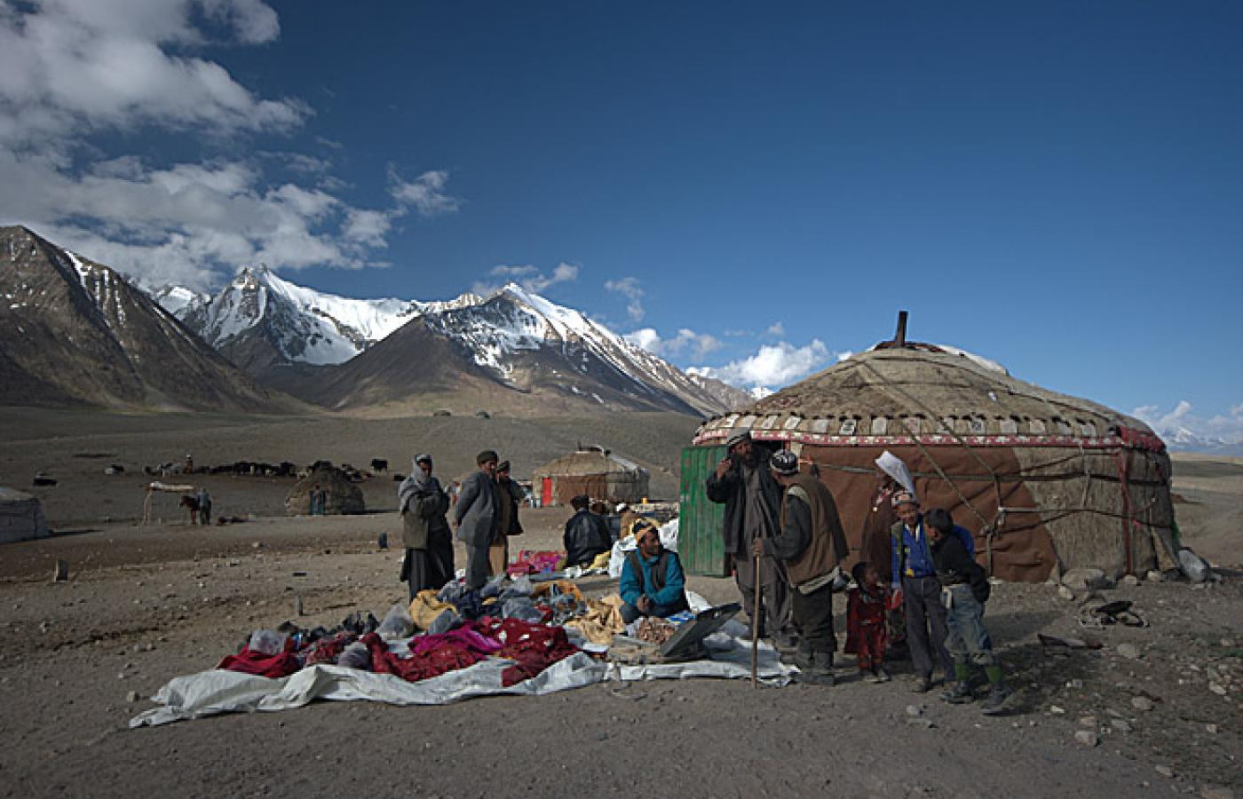 24 lutego 2010 Galerie Kirgizi w Afganistanie - galeria 24 lutego 2010 Głównymi dostarczycielami dóbr użytkowych w Małym Pamirze są wędrowni kupcy. Handlowy poranek w osadzie Irghail. Bartłomiej Tofel Bartłomiej Tofel Leżące w północno-wschodniej części Afganistanu plateau Małego Pamiru ma około 12 kilometrów szerokości i prawie 100 kilometrów długości. Osada Karakorum. Bartłomiej Tofel Znajduje się tu kilkanaście osad kirgiskich nomadów. Widok na osadę Irghail w centrum Małego Pamiru. Bartłomiej Tofel Na miarę skromnych możliwości ekonomicznych koczownicy starają się iść z duchem czasów i rozwojem technologii. Jurta w osadzie Uczdżilga. Bartłomiej Tofel Codzienne trudy spoczywają przede wszystkim na barkach kobiet. Tu kobieta z osady Irghail w drodze po wodę. Bartłomiej Tofel Powrót z wodą do jurty pełniącej rolę ogólnoobozowej kuchni. Bartłomiej Tofel Chwila przerwy w dojeniu jaków w osadzie Irghail. Bartłomiej Tofel Handlarze sprzedają głównie materiały, ubrania i buty. Pasztuński kupiec wystawia swoje towary w osadzie Irghail. Bartłomiej Tofel Ważną część asortymentu stanowią także towary luksusowe - perfumy, pozłacane zegarki i inne ozdoby. Handel w osadzie Uczdżilga w Małym Pamirze. Bartłomiej Tofel Wędrowni handlarze pochodzą najczęściej z Badachszanu lub okolic Kabulu. Tu pasztuńscy kupcy z oazy Parwan pod Kabulem. Bartłomiej Tofel Istotną rolę w życiu nomadów pełni gościnność. Tradycja każe witać każdego przybysza posiłkiem. Na zdjęciu jurta w osadzie Sayotuk. Bartłomiej Tofel Brak dostępu do nowoczesnej opieki zdrowotnej i trudne warunki życia to niektóre z przyczyn popularności opium. Samad podczas jednej z codziennych sesji. Więcej na ten tematKirgizi na pustkowiach Azji