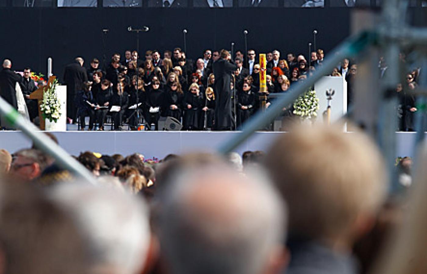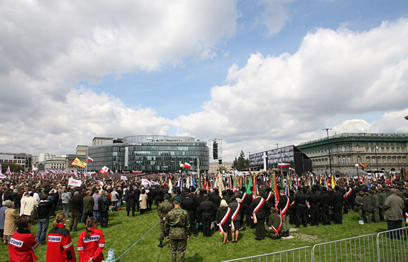 17 kwietnia 2010 r., Warszawa. Polska uroczyście pożegnała prezydenta Lecha Kaczyńskiego, który zginął w katastrofie lotniczej pod Smoleńskiem. W samo południe w stolicy zabiły dzwony we wszystkich kościołach, rozbrzmiały syreny alarmowe. Godzinę później rozpoczęła się msza za dusze 96 ofiar, pasażerów tragicznego lotu TU 154M.