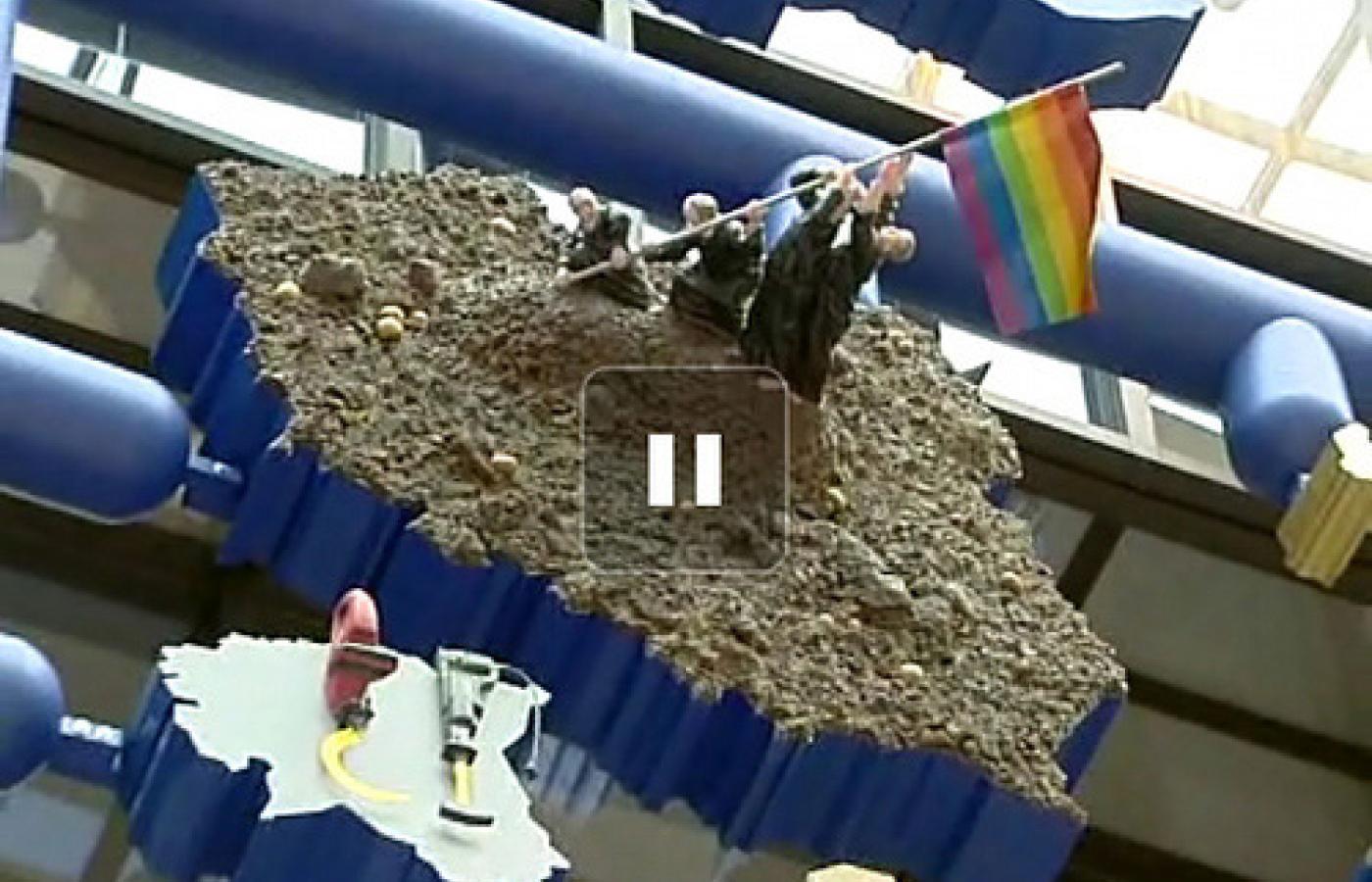 Fragment instalacji-prowokacji słynnego czeskiego artysty Davida Czernego, odnoszącej się do stereotypów na temat poszczególnych krajów. (David Czerny, Entropa)David Czerny/materiały prasowe Fragment instalacji-prowokacji słynnego czeskiego artysty Davida Czernego, odnoszącej się do stereotypów na temat poszczególnych krajów. (David Czerny, Entropa)