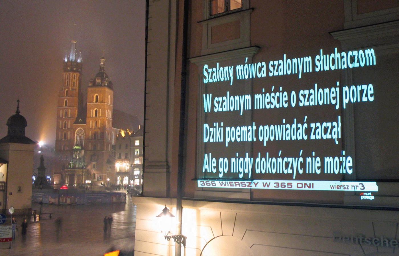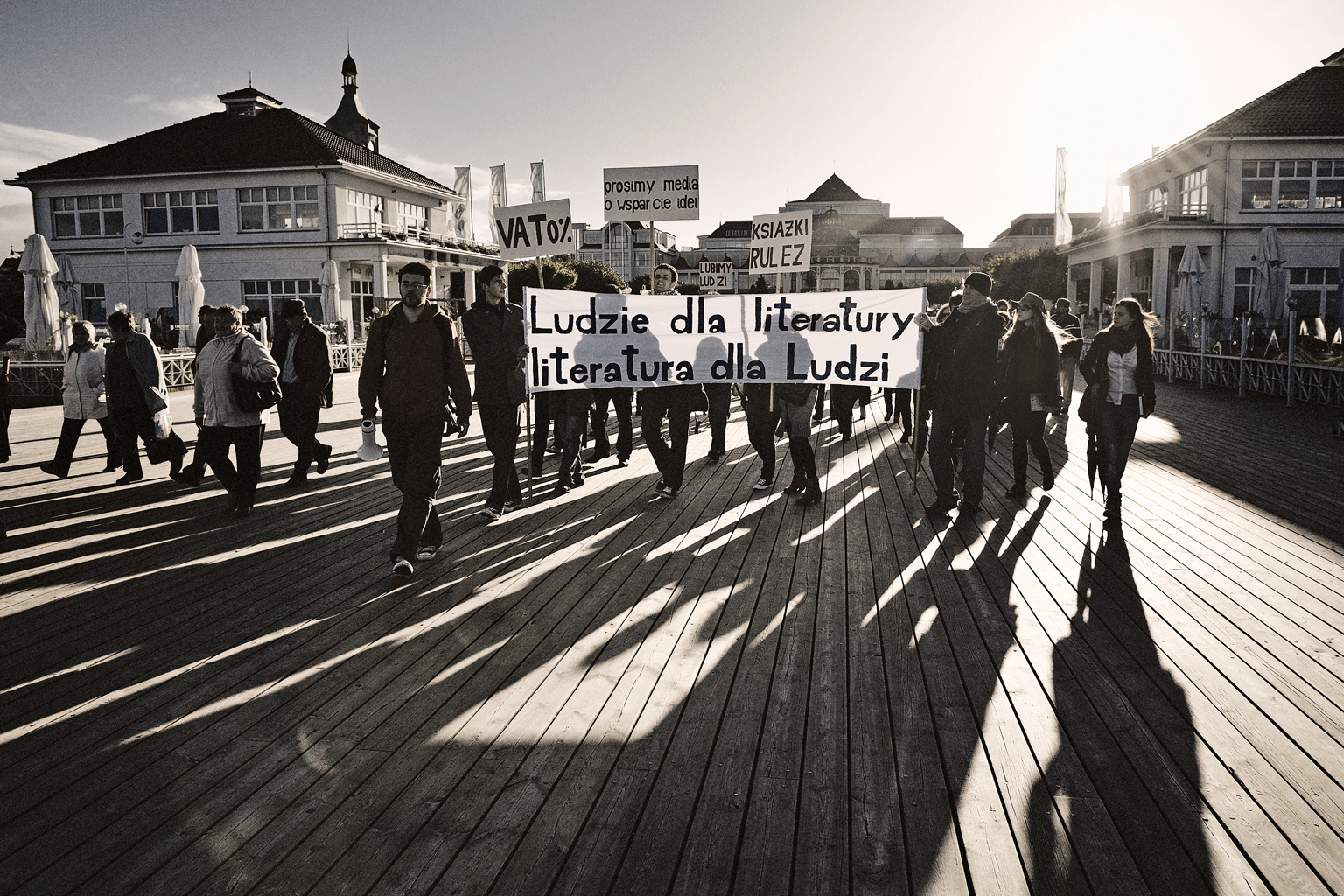 4 grudnia 2010 Galerie Nowoczesna promocja czytelnictwa - galeria 4 grudnia 2010 We wrześniu tego roku Zjednoczenie Czytelnicze dowodzone przez trójmiejską Spółdzielnię Literacką zorganizowało happening w ramach akcji ”Molo książkowe”. materiały prasowe Książki na przystankach autobusowych, wiersze spadające z nieba czy oglądane na chodniku. Promocja czytelnictwa w Polsce nabiera rozpędu. Przedstawiamy najbardziej niekonwencjonalne akcje na wskrzeszenie lektury. clurr/Flickr CC by SA Bibliometro, czyli miniaturowe biblioteki na stacjach metra, otwarto po raz pierwszy w Santiago de Chile w 1996 roku. Proste zasady wypożyczania książek (wystarczy karnet zwykłej biblioteki bądź dowód) sprawiły, że inicjatywa odniosła duży sukces. Podobn Daniel Lobo/Flickr CC by SA W 2005 roku Bibliometro pojawiło się na 18 stacjach w Madrycie. Co roku z ponad 500 dostępnych tytułów książek i multimediów korzysta ponad 75 tysięcy czytelników, znacznie więcej niż użytkowników zwykłych bibliotek. materiały prasowe W 2009 roku w ramach akcji ”Poczytalnia” na wrocławskim dworcu przygotowano kącik z prasą i książkami , spektakle oraz warsztaty dla dzieci. materiały prasowe Na dworcu ustawiono dekorację w postaci wielkiej otwartej książki posklejanej z fragmentów różnych tytułów w powiększonej skali. materiały prasowe Każdy z kilkudziesięciu uczestników ”flashmoba” na znak inaugurujący otworzył przyniesioną książkę i oddał się cichej lekturze przez pół godziny. Tomasz Gzell/PAP ”Deszcz wierszy” to akcja chilijskiej fundacji CasaGrande. Helikoptery zrzucają wiersze młodych poetów na miasta, które były w przeszłości bombardowane. Tomasz Gzell/PAP Warszawa była czwartym , po Santiago de Chile, Guernice i Dubrowniku, miastem w którym odbyła się akcja (w 2009 roku). Wiersze w dwóch wersjach językowych spadły na Rynek Starego Miasta i Krakowskie Przedmieście. materiały prasowe ”Multipoezja” to wszechstronna akcja krakowskiego poety Michała Zabłockiego, który umieszcza swoje wiersze na murach i chodnikach. W ramach akcji tworzy się też kolektywne wiersze na forum internetowym. materiały prasowe Codziennie po zmroku, na fasadzie kamienicy przy ulicy Brackiej w Krakowie, można przeczytac nowy wiersz. Alexandre Duret-Lutz/Wikipedia Bookcrossing, czyli zostawianie książek w miejscach publicznych (takich jak parki, kawiarnie i sklepy) po to by inni mogli z nich korzystac, narodził się w USA w 2001 roku. W Polsce działa pod postacią serwisu bookcrossing.pl. e-s/Flickr CC by SA By nie było wątpliwości co do właśności znalezionych książek, ”uwolnione” egzemplarze są zwykle oznaczone specjalną naklejką z logo bookcrossingu. Więcej na ten tematNowoczesna promocja książek