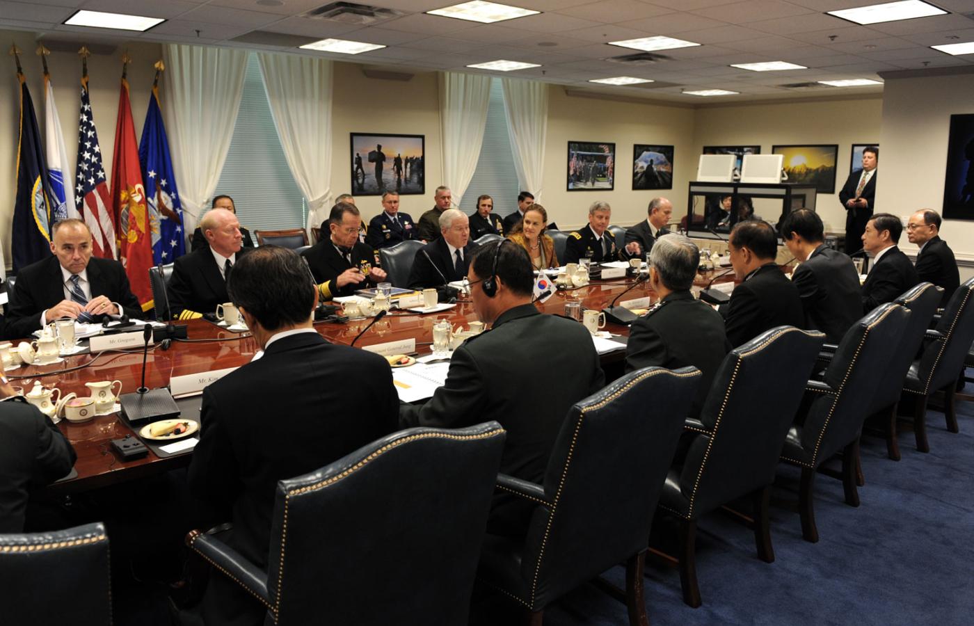 20 czerwca 2011 Galerie Forteca Pentagon - galeria 20 czerwca 2011 Każda ławka upamiętnia jedną z ofiar. East News 28 km korytarzy, 4200 zegarów, 20 restauracji i 284 toalety. Stąd Ameryka prowadzi swoje wojny, bez przerwy od 60 lat. Departament Obrony USA Pentagon to tak naprawdę nie jeden, ale pięć budynków, koncentrycznych pierścieni na planie pięcioboku. Jacquelyn Martin/AP/East News Stacja metra pod Pentagonem. By oszczędzić na windach budowniczy połączyli piętra szerokimi rampami. Departament Obrony USA Parada cheerleaderek przed dorocznym meczem futbolowym wojska lądowe kontra marynarka wojenna. Departament Obrony USA Salvatore Giunta, pierwszy żołnierz odznaczony Medalem Honoru od czasów Wietnamu, oprowadza rodzinę po Pentagonie. Departament Obrony USA Ceremonia wręczenia medalu zapięta jest na ostatni guzik. Szczegóły w programie. Departament Obrony USA Pentagon to siedziba największego pracodawcy w Ameryce. Departament obrony USA zatrudnia 3,7 mln ludzi, w tym 1,4 mln żołnierzy służby czynnej i 700 tys. cywili. Departament Obrony USA Rodzina byłego sekretarza obrony Donalda Rumsfelda podczas uroczystości odsłonięcia jego portretu w Pentagonie. Departament Obrony USA Mniej oficjalnie: urodziny 232. Korpusu Piechoty Morskiej. Gen. James T. Conway kroi tort. Departament Obrony USA Bardziej oficjalnie: droczne spotkanie przedstawicieli Korei Południowej i USA w Pentagonie. BEW W ataku na Pentagon 11 września 2001 r. zginęło 189 osób. Więcej na ten tematPentagon: Twierdza Ameryki, wojenne centrum dowodzenia