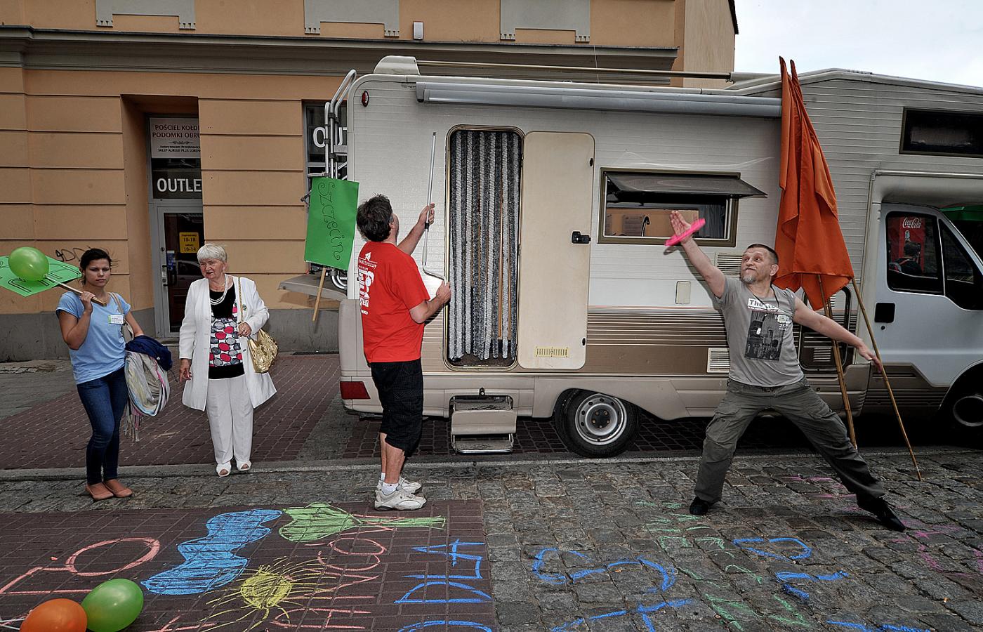 31 sierpnia 2011 Galerie Czas miejskich partyzantów - galeria 31 sierpnia 2011 Mieszkańcy przejmują ulice - wspólna akcja poznańskich partyzantów i ich towarzyszy z innych miast. Filip Springer / Polityka Mówią, że miasta należą do nich. Walcząc z małymi sprawami, powodują coraz większe zamieszanie. Często pojawiają się znikąd, robią swoje i rozpływają się w miejskiej dżungli. Filip Springer/Polityka W Katowicach prężnie działa obywatelska inicjatywa Napraw Sobie Miasto. Filip Springer/Polityka Działacze inicjatywy Napraw Sobie Miasto. Filip Springer/Polityka Katowiccy partyzanci protestowali m. in. przeciw wyburzeniu Dworca Głównego. Niestety, tę bitwę przegrali. Filip Springer/Polityka Grupa Napraw Sobie Miasto zorganizowała również akcję symbolicznej sprzedaży betonowych kielichów podtrzymujących konstrukcję dworca. Na akcję pozytywnie odpowiedziało kilka największych pracowni architektonicznych. Filip Springer/Polityka Dominik Tokarski. Razem z przyjaciółmi zasadził bluszcz, który pnie się po katowickich ekranach dźwiękoszczelnych. Filip Springer/Polityka W czasie odbywającego się w czerwcu Poznaniu I Kongresu Ruchów Miejskich przedstawiciele kilkudziesięciu organizacji w symboliczny sposób przejęli na kilka godzin ul. Wrocławską. Filip Springer/Polityka Przejęcie ulic miało zwrócić uwagę na potrzebę organizowania przyjaznych mieszkańcom przestrzeni w największych metropoliach. Filip Springer/Polityka Łódzka Grupa Pewnych Osób - pierwsza w Polsce miejska partyzantka - od 2006 r. zorganizowała kilkadziesiąt akcji. Filip Springer/Polityka Marcin Rutkiewicz i jego koledzy ze Stowarzyszenia MojeMiastoAwNim.pL przez cztery lata czyścili Warszawę z warstw plakatów i lobbowali urzędników. Filip Springer/Polityka Justyna Koeke, razem z siostrą Cecylią Malik i resztą kolektywu Modraszek, rozpętała prawdziwe powstanie w obronie zielonego Zakrzówka. Filip Springer/Polityka Do akcji przebierania się za motyle włączyło się wiele osób, które nie zgadzały się na niszczenie Zakrzówka.