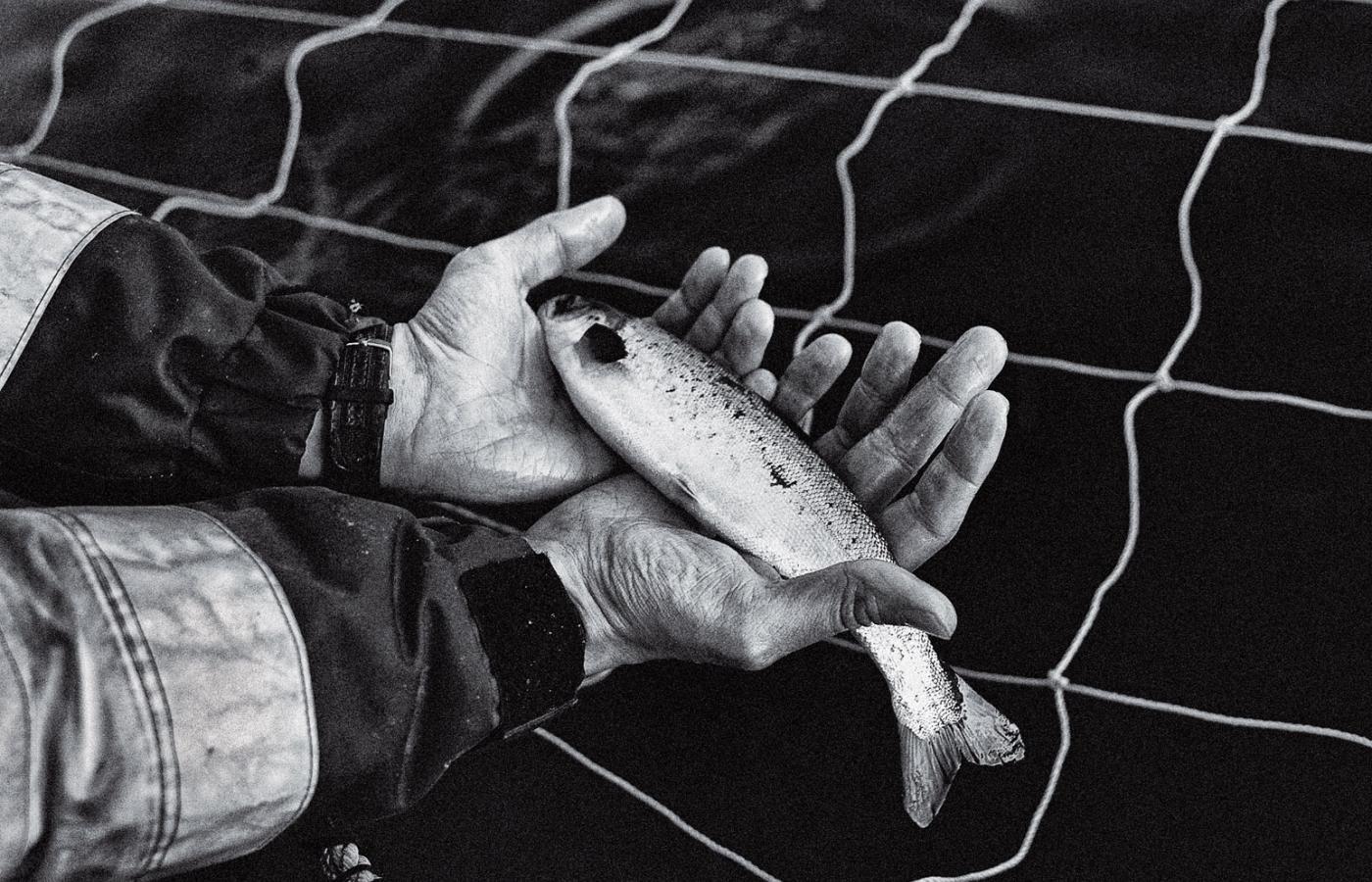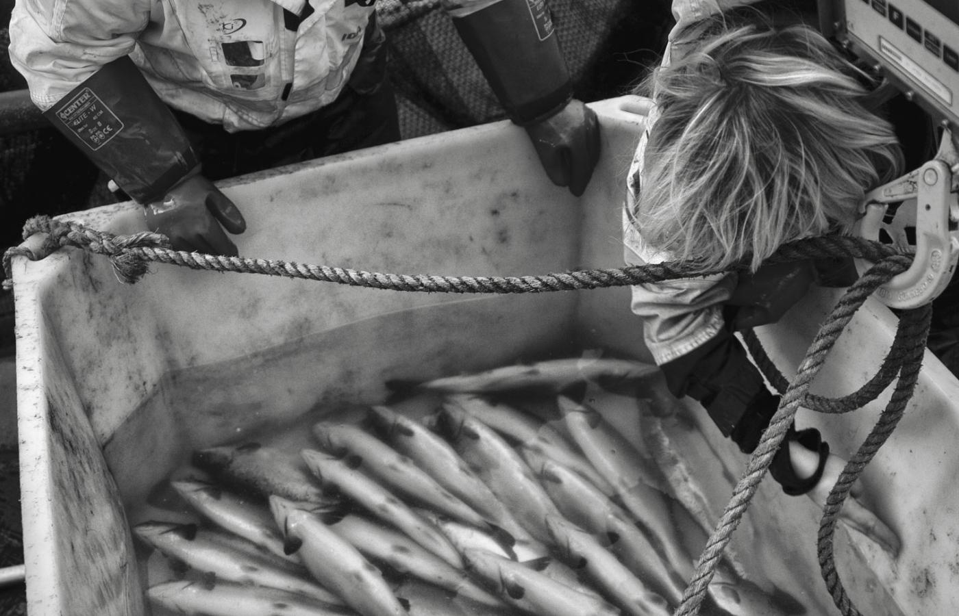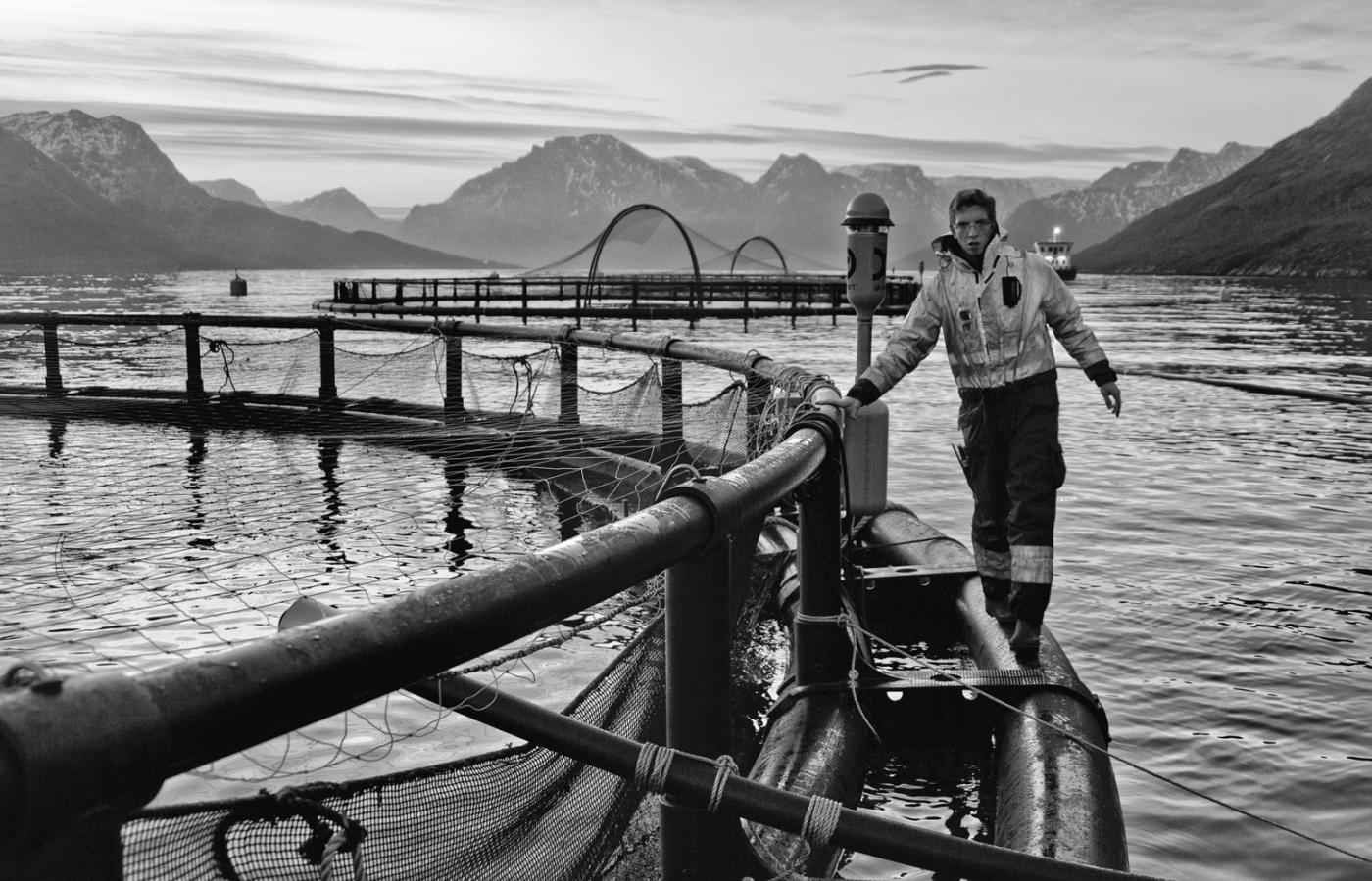 21 marca 2012 Galerie Grube ryby - galeria 21 marca 2012 Tzw. loser, czyli łosoś, który nie chciał jeść i zdechł. Ilona Wiśniewska / Polityka Norweskie łososie z Morza Barentsa są hodowane na fermach. Ryby tuczy się w klatkach zanurzonych w wodach fiordów. Ilona Wiśniewska/Polityka Hodowla odbywa się w tzw. marach, czyli klatkach na wodzie. Ilona Wiśniewska/Polityka Dzień zaczyna się od opłynięcia łódką wszystkich klatek. Ilona Wiśniewska/Polityka Ania w drodze na swoją lokalizację. Ilona Wiśniewska/Polityka Lokalizacja Storożka - miejsce pracy Ani i Margarethe. Ilona Wiśniewska/Polityka Surowa przyroda wokół i surowe warunki pracy: szatnia i stołówka. Ilona Wiśniewska/Polityka 26-letni Morten przy części farmy, którą się opiekuje. Ilona Wiśniewska/Polityka W oddziale, który odpowiada za karmienie, łosoś żyje nie dłużej niż dwa i pół roku, i do tego czasu powinien ważyć średnio 5,5 kg. Ilona Wiśniewska/Polityka W ostatnim kwartale 2011 r. cena za kilogram łososia spadła do 5,5 korony,a jeszcze w 2010 r. wynosiła 9 koron. Ilona Wiśniewska/Polityka Po lunchu, ok. godz. 14, robi się już zupełnie ciemno. Ilona Wiśniewska/Polityka Ania przy kawie z Berntem. Ilona Wiśniewska/Polityka Ania obserwuje czy łososie jedzą ile trzeba. Norwegia przemysłowy chów zwierząt ryby Więcej na ten tematReportaż: Skąd się biorą łososie norweskie
