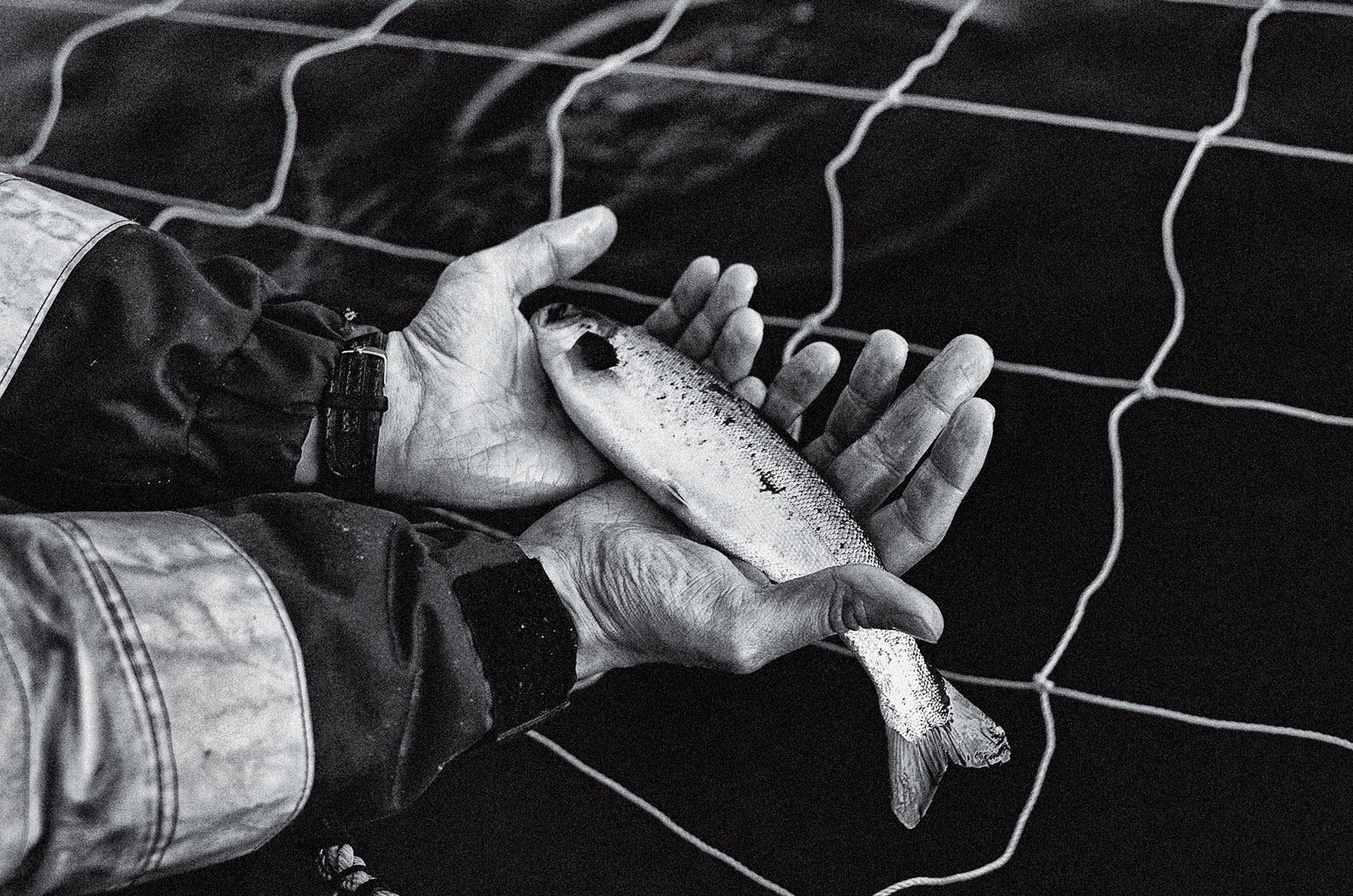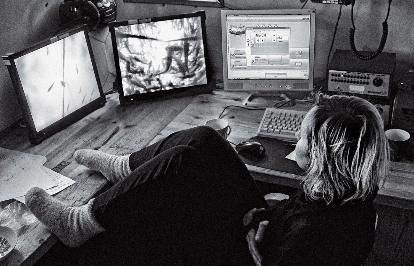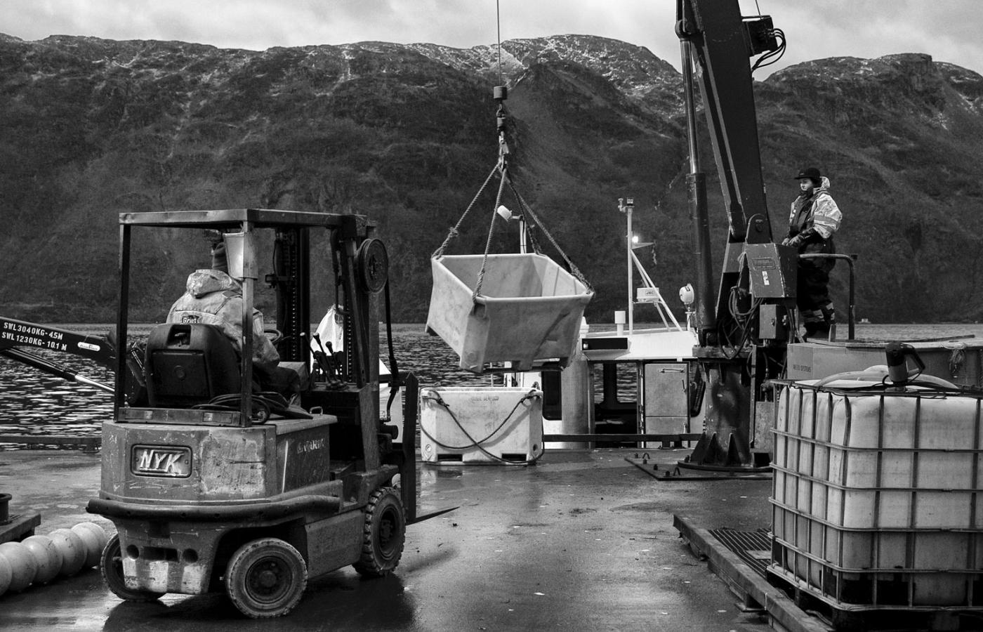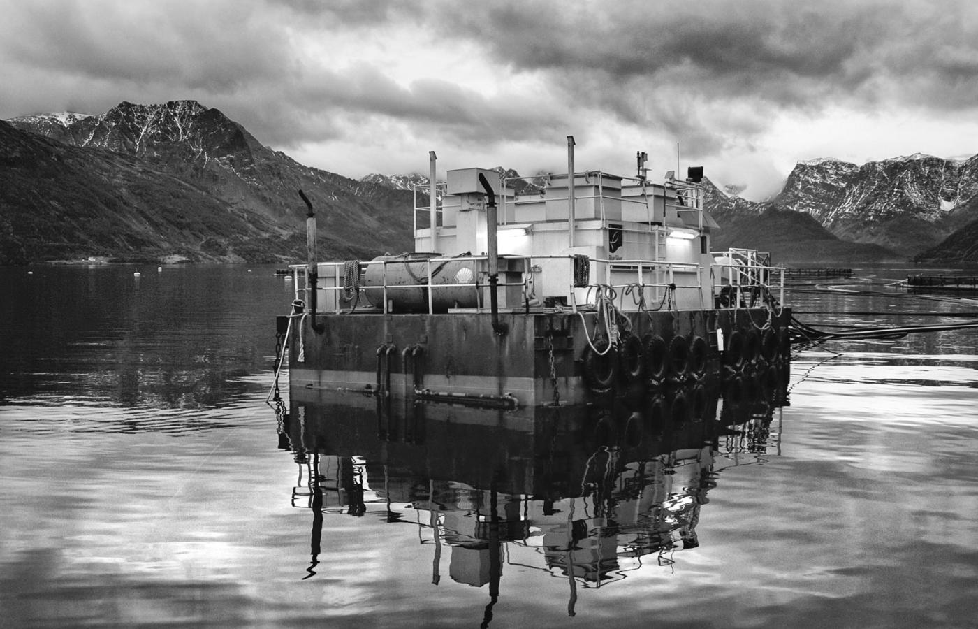 21 marca 2012 Galerie Grube ryby - galeria 21 marca 2012 Tzw. loser, czyli łosoś, który nie chciał jeść i zdechł. Ilona Wiśniewska / Polityka Norweskie łososie z Morza Barentsa są hodowane na fermach. Ryby tuczy się w klatkach zanurzonych w wodach fiordów. Ilona Wiśniewska/Polityka Hodowla odbywa się w tzw. marach, czyli klatkach na wodzie. Ilona Wiśniewska/Polityka Dzień zaczyna się od opłynięcia łódką wszystkich klatek. Ilona Wiśniewska/Polityka Ania w drodze na swoją lokalizację. Ilona Wiśniewska/Polityka Lokalizacja Storożka - miejsce pracy Ani i Margarethe. Ilona Wiśniewska/Polityka Surowa przyroda wokół i surowe warunki pracy: szatnia i stołówka. Ilona Wiśniewska/Polityka 26-letni Morten przy części farmy, którą się opiekuje. Ilona Wiśniewska/Polityka W oddziale, który odpowiada za karmienie, łosoś żyje nie dłużej niż dwa i pół roku, i do tego czasu powinien ważyć średnio 5,5 kg. Ilona Wiśniewska/Polityka W ostatnim kwartale 2011 r. cena za kilogram łososia spadła do 5,5 korony,a jeszcze w 2010 r. wynosiła 9 koron. Ilona Wiśniewska/Polityka Po lunchu, ok. godz. 14, robi się już zupełnie ciemno. Ilona Wiśniewska/Polityka Ania przy kawie z Berntem. Ilona Wiśniewska/Polityka Ania obserwuje czy łososie jedzą ile trzeba. Norwegia przemysłowy chów zwierząt ryby Więcej na ten tematReportaż: Skąd się biorą łososie norweskie