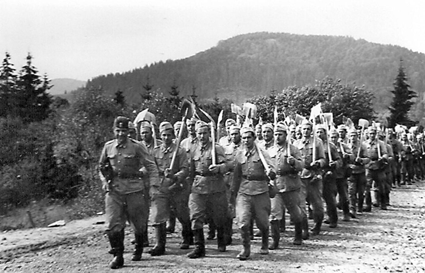 Żołnierze maszerują do pracy przy bieszczadzkich drogach…Ze zbiorów Krzysztofa Potaczały/Polityka Żołnierze maszerują do pracy przy bieszczadzkich drogach…