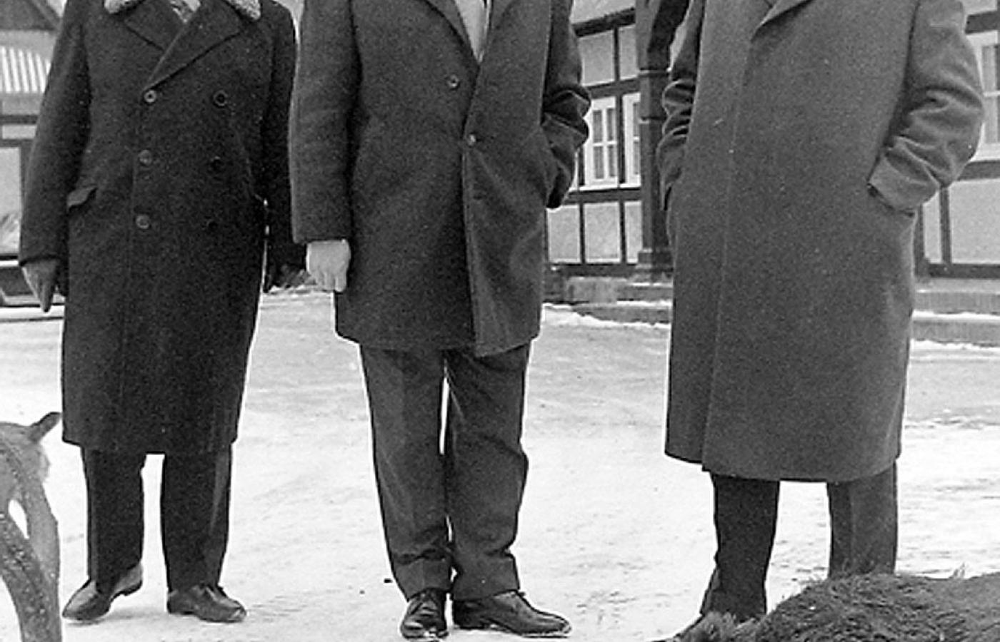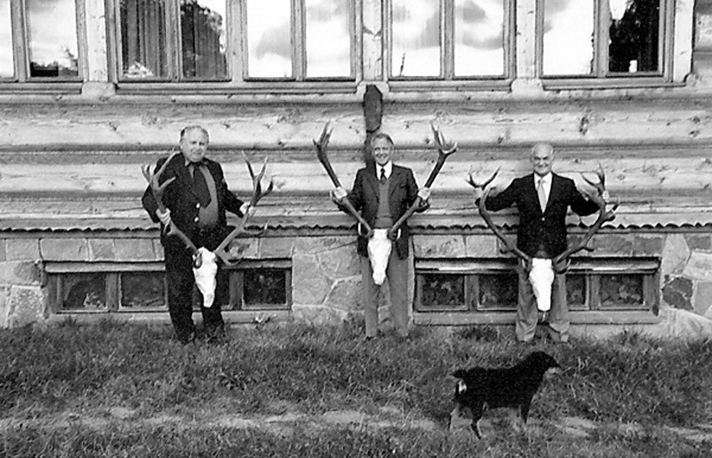 Kazimierz Doskoczyński (w środku), obok po prawej Leonid Breżniew. U ich stóp upolowane przez sowieckich dygnitarzy jelenie i dziki. Łańsk, schyłek lat sześćdziesiątych.Wacław Kapusto/materiały prasowe Kazimierz Doskoczyński (w środku), obok po prawej Leonid Breżniew. U ich stóp upolowane przez sowieckich dygnitarzy jelenie i dziki. Łańsk, schyłek lat sześćdziesiątych.