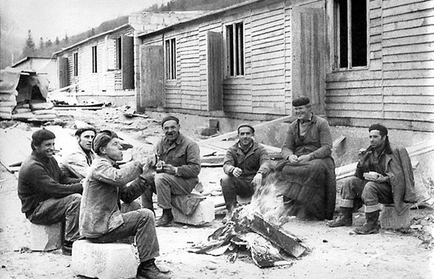 Na budowach pracowali także więźniowie. Niektórzy się sprawdzali i po zakończeniu kary zostawali w Bieszczadach. Inni wracali do domu albo znowu za kraty.Ze zbiorów Krzysztofa Potaczały/Polityka Na budowach pracowali także więźniowie. Niektórzy się sprawdzali i po zakończeniu kary zostawali w Bieszczadach. Inni wracali do domu albo znowu za kraty.
