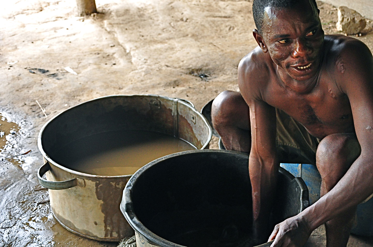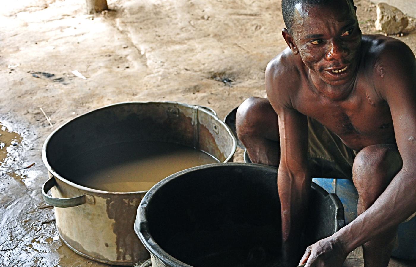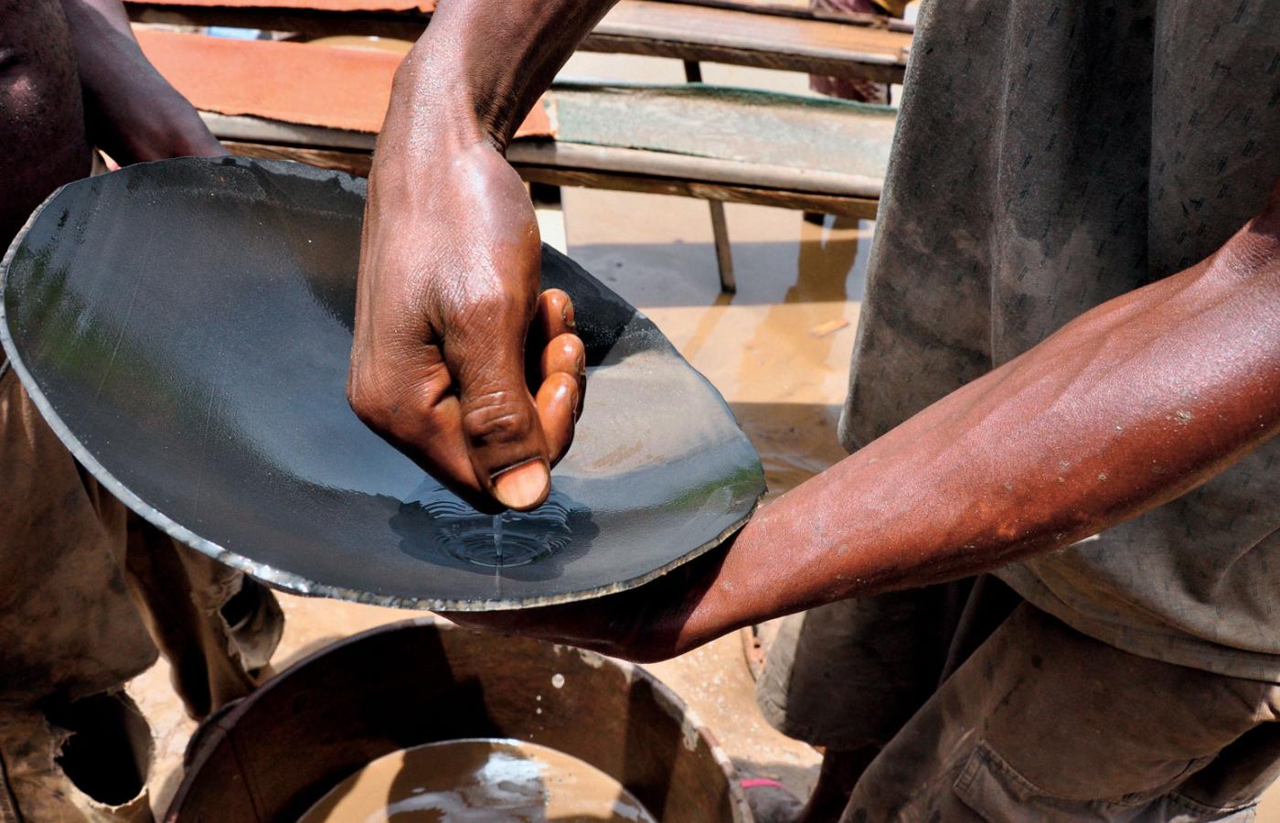 1 sierpnia 2012 Galerie Biedne Złote Wybrzeże - galeria 1 sierpnia 2012 Isaac miesza szlich z rtęcią. Marta Zaraska / Polityka Szacuje się, że około miliona z 23 mln Ghańczyków żyje z poszukiwania złota. Na ogół w konflikcie z prawem. Marta Zaraska/Polityka Nielegalna kopalnia Isaaca i Hadjiego. Marta Zaraska/Polityka Choć z tej pracy można się utrzymać, nikt nie zwraca uwagi na jej szkodliwość. Marta Zaraska/Polityka Hadji podczas płukania szmat w wielkim garze. Marta Zaraska/Polityka Tak się miesza masę mineralną z rtęcią, by odseparować złoto. Marta Zaraska/Polityka Ten etap to kilka godzin mozolnej pracy. Marta Zaraska/Polityka Hadji płucze złoto. Marta Zaraska/Polityka Hadji pokazuje grudkę złota. Marta Zaraska/Polityka W kopalni Szefa kamienie są mielone na drobny pył. Marta Zaraska/Polityka Instalacja do mielenia odłamków złotonośnych skał. Marta Zaraska/Polityka Jedno z dzieci pracujących w galamsey. Marta Zaraska/Polityka Brzeg jeziora Wolta, największego sztucznego zbiornika na świecie - rodzinne okolice Nicolasa. Marta Zaraska/Polityka Brakuje tu pracy dla okolicznych mieszkańców. Więcej na ten tematPoszukiwacze złota w Ghanie