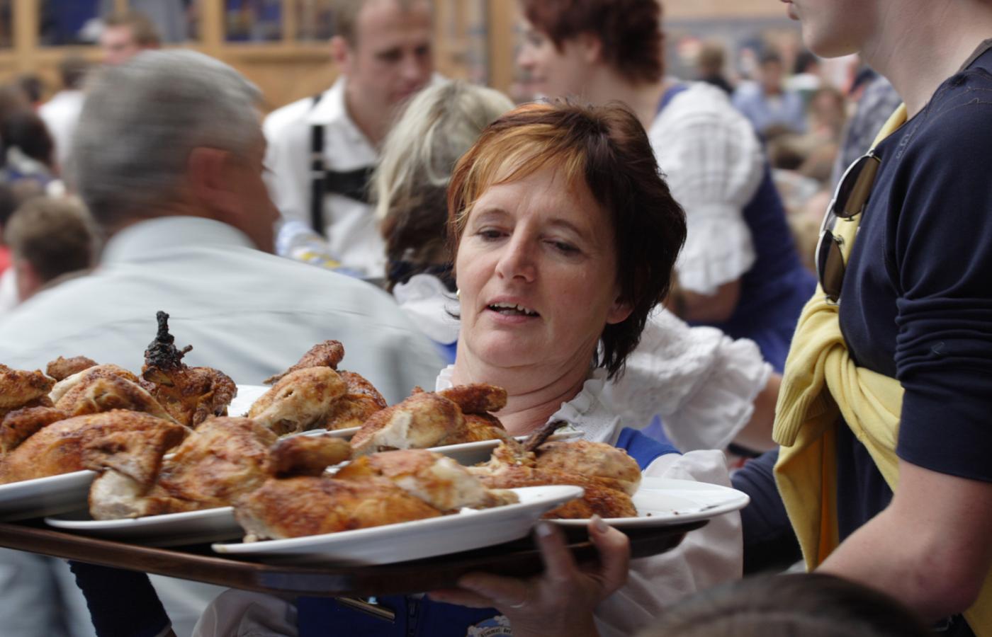 27 września 2012 Galerie Oktoberfest - no to fiesta! 27 września 2012 Jak one to robią? Bawarskie kelnerki potrafią przynieść na raz do 10 litrowych kufli (do ciężaru piwa trzeba doliczyć ciężar kufla wykonanego z grubego szkła). Leigh Harries / Forum W niedzielę 23 września w Monachium ruszyło największe święto piwa na świecie, które potrwa do 2 października. Jak co roku do stolicy Bawarii ściągają rzesze turystów, by wypić morze piwa i zjeść bawarskie przysmaki. Michael Dalder/Reuters/Forum „O’zapft is!”(odszpuntowana) - burmistrz Bawarii Christian Ude uroczyście otwiera pierwszą beczkę. Przez 19 lat nabył już w tym wprawy. Podczas pierwszego odszpuntowania potrzebował aż 7 uderzeń młotkiem, teraz tylko dwóch. jikatu/Flickr CC by SA Do Bawarii ściągają rzesze Niemców i zagranicznych turystów. Mówi się, że świętuje tu ok. 6 mln smakoszy. jikatu/Flickr CC by SA Tradycyjny Dirndl, czyli strój składający się z białej bluzki, gorsetu, spódnicy i fartucha króluje na bawarskich ulicach. jikatu/Flickr CC by SA Mężczyźni zadają szyku w Lederhose, czyli krótkich skórzanych spodniach na szelkach. evocateur/Flickr CC by SA Każdy stara się wyróżnić. Swe początki święto wzięło od urządzonego w 1810 r. z okazji ślubu księcia Ludwika Wittelsbacha, późniejszego króla Bawarii z Teresą von Sachsen-Hildburghausen pikniku konnym pod murami Monachium. Łąka, na której odbył się festyn zoonabar/Flickr CC by SA Przez kilkanaście dni życie koncentruje się w halach na Łąkach Teresy... Jan Beckendorf/Flickr CC by SA ... i ulicznych knajpkach. a4gpa/Flickr CC by SA Króluje oczywiście piwo. Dostępne jest tylko to warzone w bawarskich browarach. Szacuje się, że goście wypijają ok. 7,5 milionów tego trunku. Vitor Pamplona/Flickr CC by 2.0 W czasie Oktoberfest wypija się morze piwa. W tym roku kufel piwa kosztuje ponad 9euro. scjody/Flickr CC by SA Główną przekąską jest tradycjny precel tzw. Brezel. jikatu/Flickr CC by SA Zjada się też tysiące kiełbasek (słynne niemieckie Bratwurst czy Bockwurst). Sporym wzięciem cieszy się tzw. zmiana popołudniowa (od g. 11 do 16.30) - za cenę 35 euro można zjeść pieczonego kurczaka i wypić dwa litry piwa. andrijbulba/Flickr CC by SA Czasem trzeba przegryźć coś konkretniejszego. Bywalcy bawarskiej biesiady jadają ok. 600 tysięcy kurczaków i podobną liczbę golonek. Vitor Pamplona/Flickr CC by 2.0 Nie ma zabawy bez muzyki. Głośnej muzyki. 46137/Flickr CC by 2.0 Tańczy się gdzie się da. Także na stołach. a4gpa/Flickr CC by SA Zabawa trwa do białego rana. jikatu/Flickr CC by SA Trzeba mieć humor. jikatu/Flickr CC by SA Na Oktoberfest zarabiają wszyscy. Vitor Pamplona/Flickr CC by 2.0 Najmłodsze pokolenie uczestniczy w wielkim święcie od najwcześniejszych lat. Vitor Pamplona/Flickr CC by 2.0 Bawarczycy spożywają najwięcej piwa na świecie - każdy z nich wypija średnio 200 litrów. vixyao/Flickr CC by SA Bawarski zwyczaj przenosi się też poza granice Niemiec. Na fot. Oktoberfest w wersji azjatyckiej. digital cat/Flickr CC by 2.0 Przyszłoroczne 180. w historii Oktoberfest zaczyna się 21 września.
