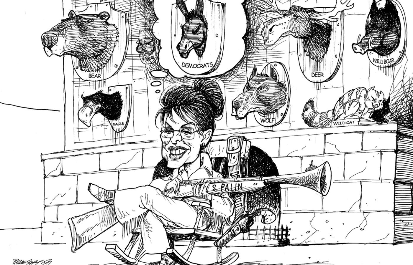 Sarah Palin, była kandydatka na prezydenta USA: Skoro Bóg nie chciał, żebyśmy jedli zwierzęta, to dlaczego stworzył je z mięsa?Cagle Cartoons Sarah Palin, była kandydatka na prezydenta USA: Skoro Bóg nie chciał, żebyśmy jedli zwierzęta, to dlaczego stworzył je z mięsa?