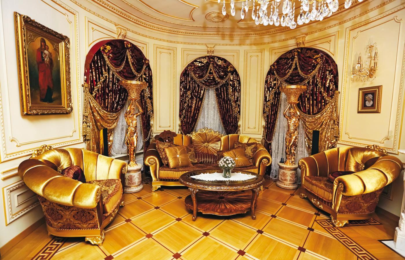 Przepych, rozmach, brak wyraźnego stylu, monumentalizm, upodobanie dla kiczu. Prawdziwie królewskie kolory: złoto, purpura, szkarłat i szafir. W wyposażeniu kryty basen, sale kinowe i bilardowe, biały fortepian. Oto estetyczny profil siedzib współczesnych satrapów – dyktatorów zapatrzonych w hollywoodzkie wzorce. Wydaje się, że wyznają zasadę „mniej znaczy mniej, a więcej znaczy więcej” – ornamentów nigdy dość. Tak dziś manifestuje się władzę. Prezentujemy posiadłości m.in. Wiktora Janukowycza, Williama Hearsta i Gianniego Versace. Jak się urządzili?