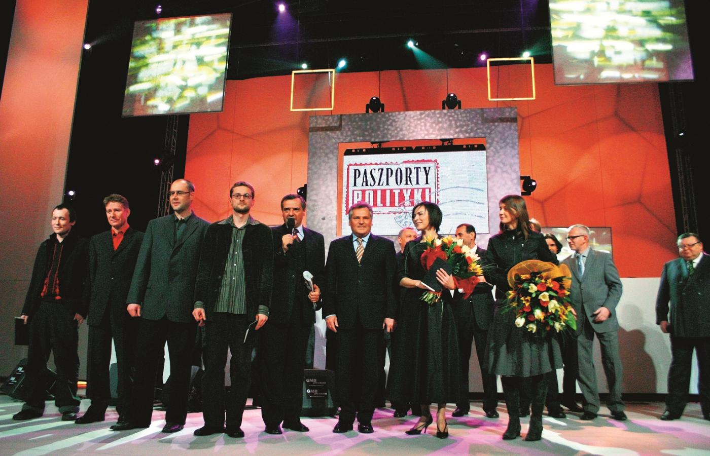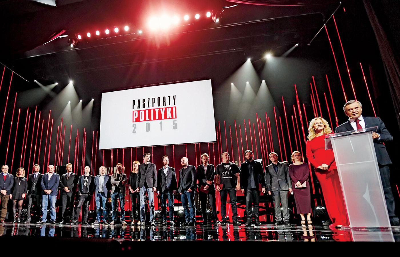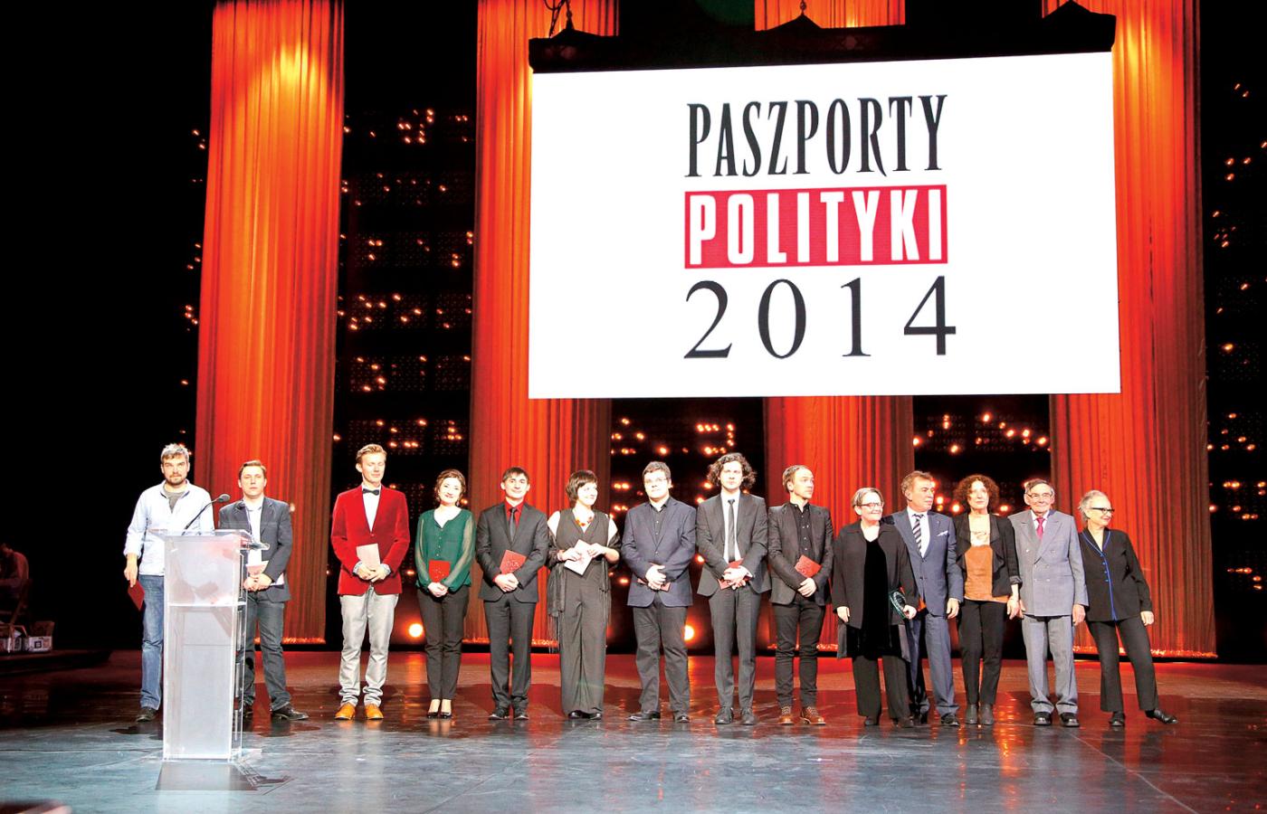 20 grudnia 2014 Galerie Historia Paszportów POLITYKI na 25 zdjęciach 20 grudnia 2014 Laureaci pierwszej edycji Paszportów z 1993 r. Pierwszy od lewej: rysownik Stasys Eidrigevicius, wieloletni współpracownik POLITYKI, w środku 22-letnia wówczas Katarzyna Nosowska, a następny obok niej dramaturg Tadeusz Słobodzianek. Polityka Historia Paszportów POLITYKI: 24 edycje na 24 zdjęciach. Polityka W 1994 r. z wyróżnienia cieszyły się Edyta Bartosiewicz i Krystyna Meissner oraz (od lewej) Ryszard Górecki, Jan Jakub Kolski i Piotr Anderszewski. Polityka Gala w 1995 roku. Od lewej: Zdzisław Pietrasik, kierownik działu kulturalnego oraz redaktor naczelny POLITYKI Jerzy Baczyński. Polityka W 1996 r. Paszport otrzymał m.in. Grzegorz Ciechowski. Polityka Nagrodzeni w 1997 r.: Jerzy Stuhr (w jego imieniu Paszport odebrał syn Maciej), Dariusz Paradowski, Anna Augustynowicz, Katarzyna Kozyra, Andrzej Sapkowski i Kayah. Polityka Kazik Staszewski gratuluje pozostałym wyróżnionym w 1998 r. Polityka Laureat kategorii teatralnej Grzegorz Jarzyna z Magdaleną Cielecką, 1998 r. Polityka Wspólne zdjęcie laureatów w 1999 r. Zespół Myslovitz nie potraktował go zbyt poważnie... Polityka Swoje umiejętności prezentuje Stanisław Drzewiecki, najmłodszy laureat w historii Paszportów (2000 r.). Polityka Laureaci na wspólnym zdjęciu w 2000 r. Do dziś tylko panie otrzymują kwiaty... Polityka Swój Paszport dumnie pokazuje fotografom Agnieszka Chylińska (2001 r.). Polityka Dorota Masłowska swój Paszport otrzymała z rąk Jerzego Pilcha i Wojciecha Kuczoka (2002 r.). Polityka Laureaci z 2003 r. na scenie Teatru Polskiego w Warszawie otrzymali gratulacje od prezydenta Aleksandra Kwaśniewskiego. Polityka Chwila dla fotoreporterów podczas gali w 2004 r. Polityka Zdzisław Pietrasik z aktorami: Danutą Stenką, Mają Ostaszewską i Jackiem Poniedziałkiem w 2005 r. Polityka Rafał Blechacz nagrodzony w 2005 r. Paszportem w kategorii Muzyka Poważna. Polityka W 2006 r. nagrodę kreatora kultury otrzymała prof. Maria Janion. Polityka Piotr Sarzyński wraz z Paszportem przekazuje Joannie Rajkowskiej miniaturową wersję jej Palmy (2007 r.). Pierwszy z prawej: rzeźbiarz Mirosław Bałka. Polityka Maria Peszek tuż po ogłoszeniu jej wygranej w kategorii Muzyka Popularna (2008 r.). Polityka W galach wręczenia Paszportów uczestniczyły najważniejsze osoby w państwie. W 2008 r. w Teatrze Wielkim obecny był premier Donald Tusk i marszałek Sejmu Bronisław Komorowski. Polityka Prowadzący Grażyna Torbicka i Jerzy Baczyński podczas gali w 2012 r. w strojach nawiązujących do jednej z akcji artystycznych Pawła Althamera. Polityka Wszyscy laureaci Paszportów 2013 na scenie Teatru Wielkiego. Paweł Załęcki/Polityka Wszyscy laureaci Paszportów 2014 na scenie Teatru Wielkiego. Tadeusz Późniak, Leszek Zych/Polityka Wszyscy laureaci Paszportów 2015 na scenie Teatru Wielkiego. Leszek Zych/Polityka Wszyscy laureaci Paszportów 2016 na scenie Teatru Wielkiego. Paszporty POLITYKI