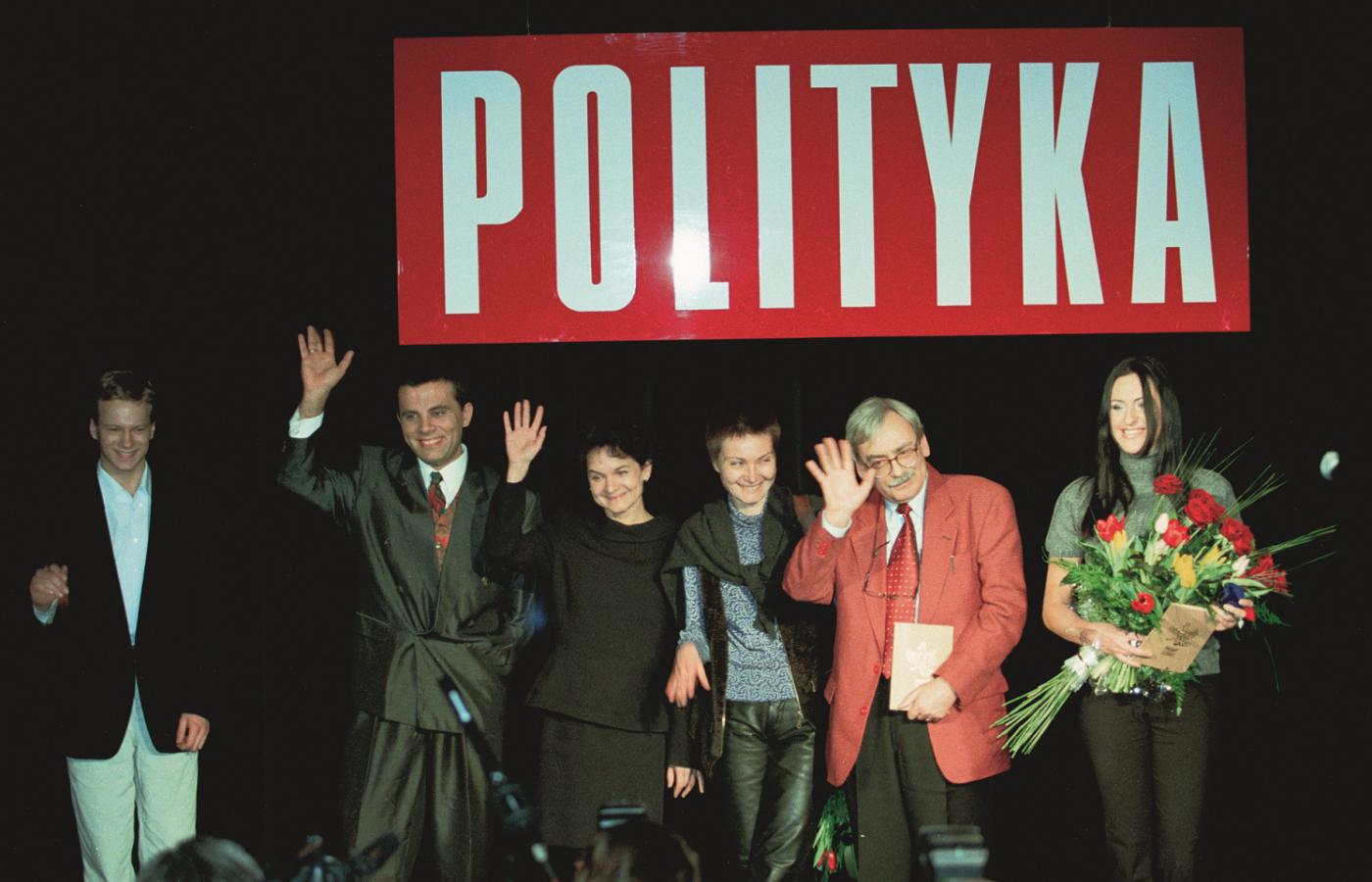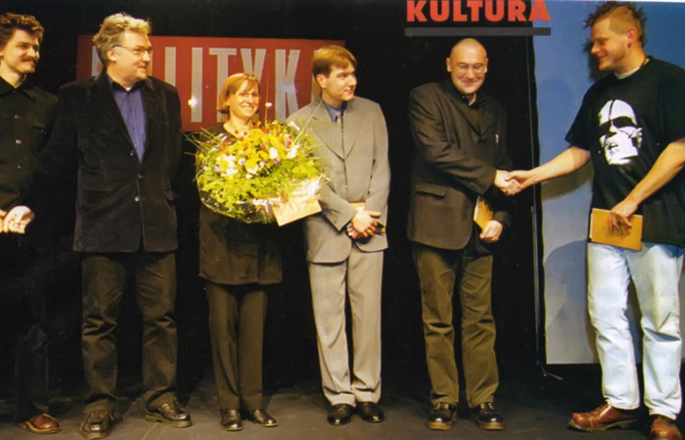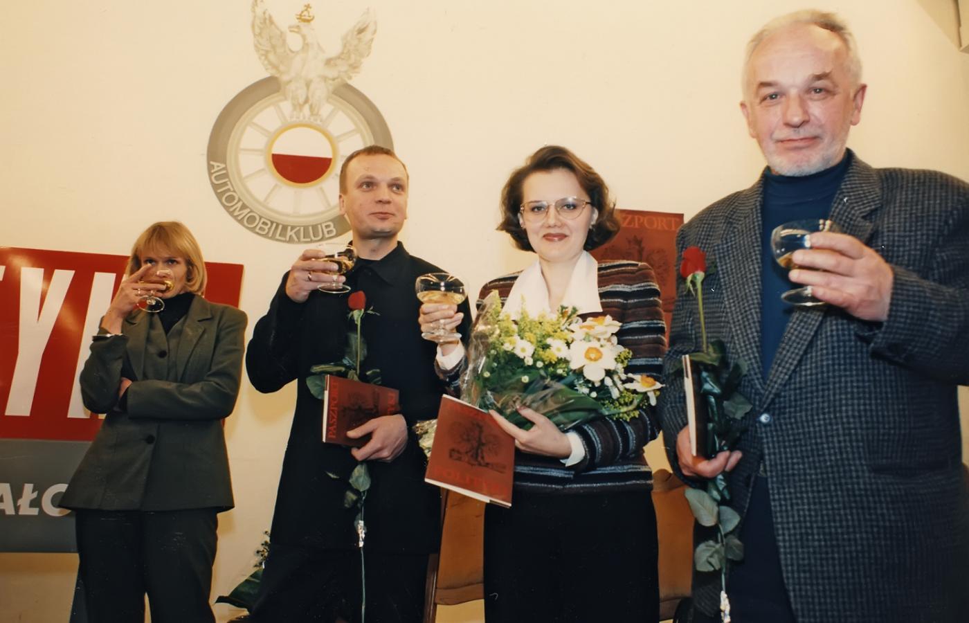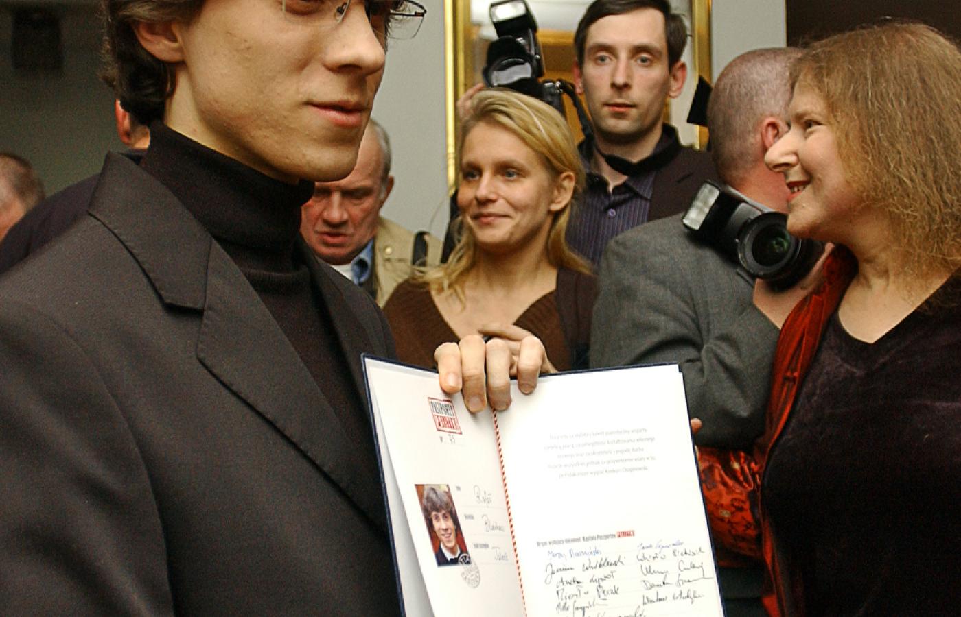 20 grudnia 2014 Galerie Historia Paszportów POLITYKI na 25 zdjęciach 20 grudnia 2014 Laureaci pierwszej edycji Paszportów z 1993 r. Pierwszy od lewej: rysownik Stasys Eidrigevicius, wieloletni współpracownik POLITYKI, w środku 22-letnia wówczas Katarzyna Nosowska, a następny obok niej dramaturg Tadeusz Słobodzianek. Polityka Historia Paszportów POLITYKI: 24 edycje na 24 zdjęciach. Polityka W 1994 r. z wyróżnienia cieszyły się Edyta Bartosiewicz i Krystyna Meissner oraz (od lewej) Ryszard Górecki, Jan Jakub Kolski i Piotr Anderszewski. Polityka Gala w 1995 roku. Od lewej: Zdzisław Pietrasik, kierownik działu kulturalnego oraz redaktor naczelny POLITYKI Jerzy Baczyński. Polityka W 1996 r. Paszport otrzymał m.in. Grzegorz Ciechowski. Polityka Nagrodzeni w 1997 r.: Jerzy Stuhr (w jego imieniu Paszport odebrał syn Maciej), Dariusz Paradowski, Anna Augustynowicz, Katarzyna Kozyra, Andrzej Sapkowski i Kayah. Polityka Kazik Staszewski gratuluje pozostałym wyróżnionym w 1998 r. Polityka Laureat kategorii teatralnej Grzegorz Jarzyna z Magdaleną Cielecką, 1998 r. Polityka Wspólne zdjęcie laureatów w 1999 r. Zespół Myslovitz nie potraktował go zbyt poważnie... Polityka Swoje umiejętności prezentuje Stanisław Drzewiecki, najmłodszy laureat w historii Paszportów (2000 r.). Polityka Laureaci na wspólnym zdjęciu w 2000 r. Do dziś tylko panie otrzymują kwiaty... Polityka Swój Paszport dumnie pokazuje fotografom Agnieszka Chylińska (2001 r.). Polityka Dorota Masłowska swój Paszport otrzymała z rąk Jerzego Pilcha i Wojciecha Kuczoka (2002 r.). Polityka Laureaci z 2003 r. na scenie Teatru Polskiego w Warszawie otrzymali gratulacje od prezydenta Aleksandra Kwaśniewskiego. Polityka Chwila dla fotoreporterów podczas gali w 2004 r. Polityka Zdzisław Pietrasik z aktorami: Danutą Stenką, Mają Ostaszewską i Jackiem Poniedziałkiem w 2005 r. Polityka Rafał Blechacz nagrodzony w 2005 r. Paszportem w kategorii Muzyka Poważna. Polityka W 2006 r. nagrodę kreatora kultury otrzymała prof. Maria Janion. Polityka Piotr Sarzyński wraz z Paszportem przekazuje Joannie Rajkowskiej miniaturową wersję jej Palmy (2007 r.). Pierwszy z prawej: rzeźbiarz Mirosław Bałka. Polityka Maria Peszek tuż po ogłoszeniu jej wygranej w kategorii Muzyka Popularna (2008 r.). Polityka W galach wręczenia Paszportów uczestniczyły najważniejsze osoby w państwie. W 2008 r. w Teatrze Wielkim obecny był premier Donald Tusk i marszałek Sejmu Bronisław Komorowski. Polityka Prowadzący Grażyna Torbicka i Jerzy Baczyński podczas gali w 2012 r. w strojach nawiązujących do jednej z akcji artystycznych Pawła Althamera. Polityka Wszyscy laureaci Paszportów 2013 na scenie Teatru Wielkiego. Paweł Załęcki/Polityka Wszyscy laureaci Paszportów 2014 na scenie Teatru Wielkiego. Tadeusz Późniak, Leszek Zych/Polityka Wszyscy laureaci Paszportów 2015 na scenie Teatru Wielkiego. Leszek Zych/Polityka Wszyscy laureaci Paszportów 2016 na scenie Teatru Wielkiego. Paszporty POLITYKI