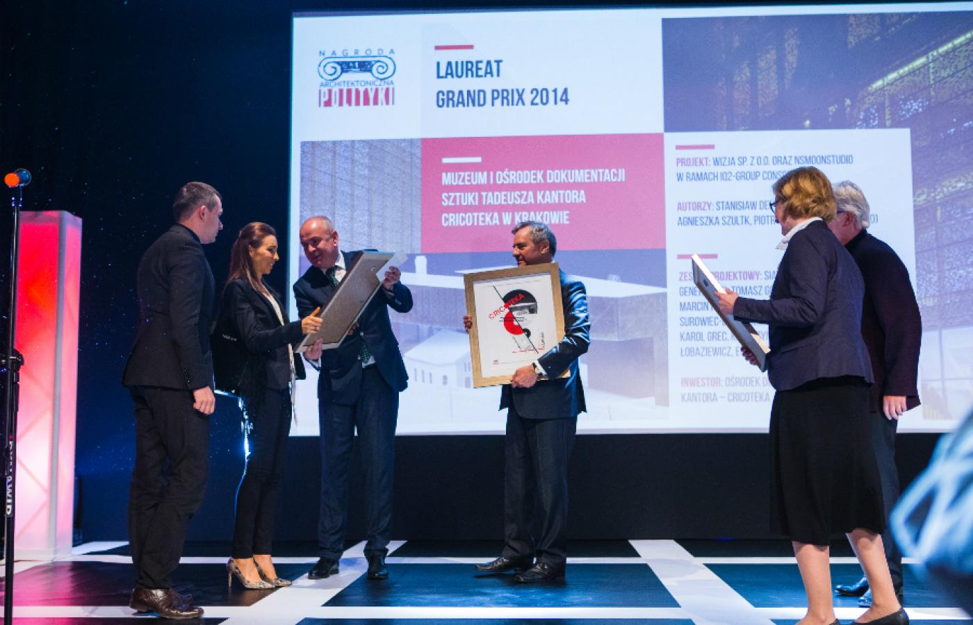 Grand Prix za najlepszą realizację 2014 roku otrzymało ostatecznie Muzeum Tadeusza Kantora i Ośrodek Dokumentacji Sztuki Tadeusza Kantora Cricoteka w Krakowie. Osobne wyróżnienie – przyznawane tradycyjnie przez czytelników POLITYKI – powędrowało do autorów projektu katowickiej siedziby NOSPR.