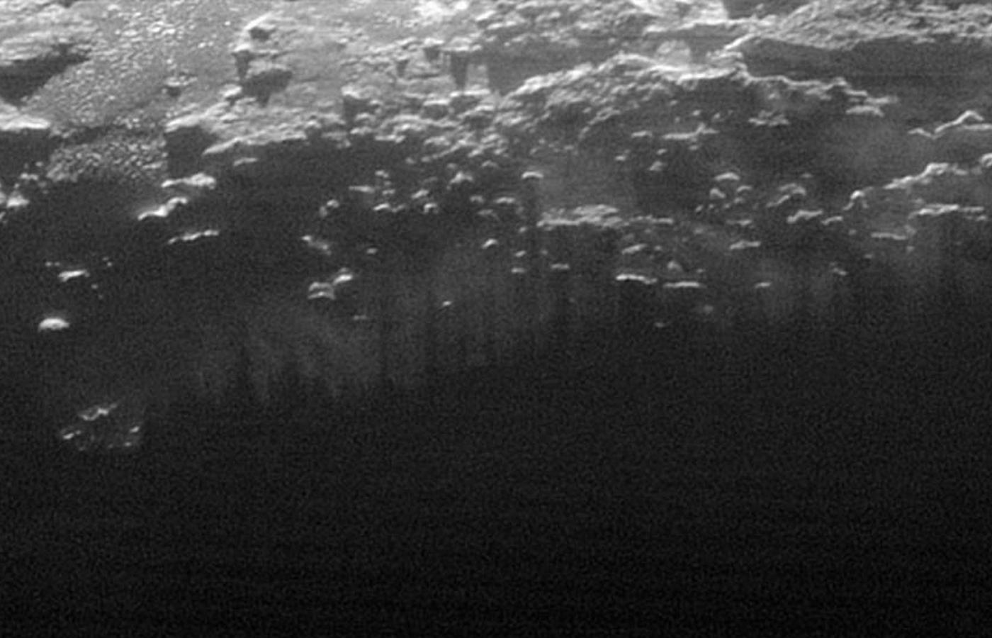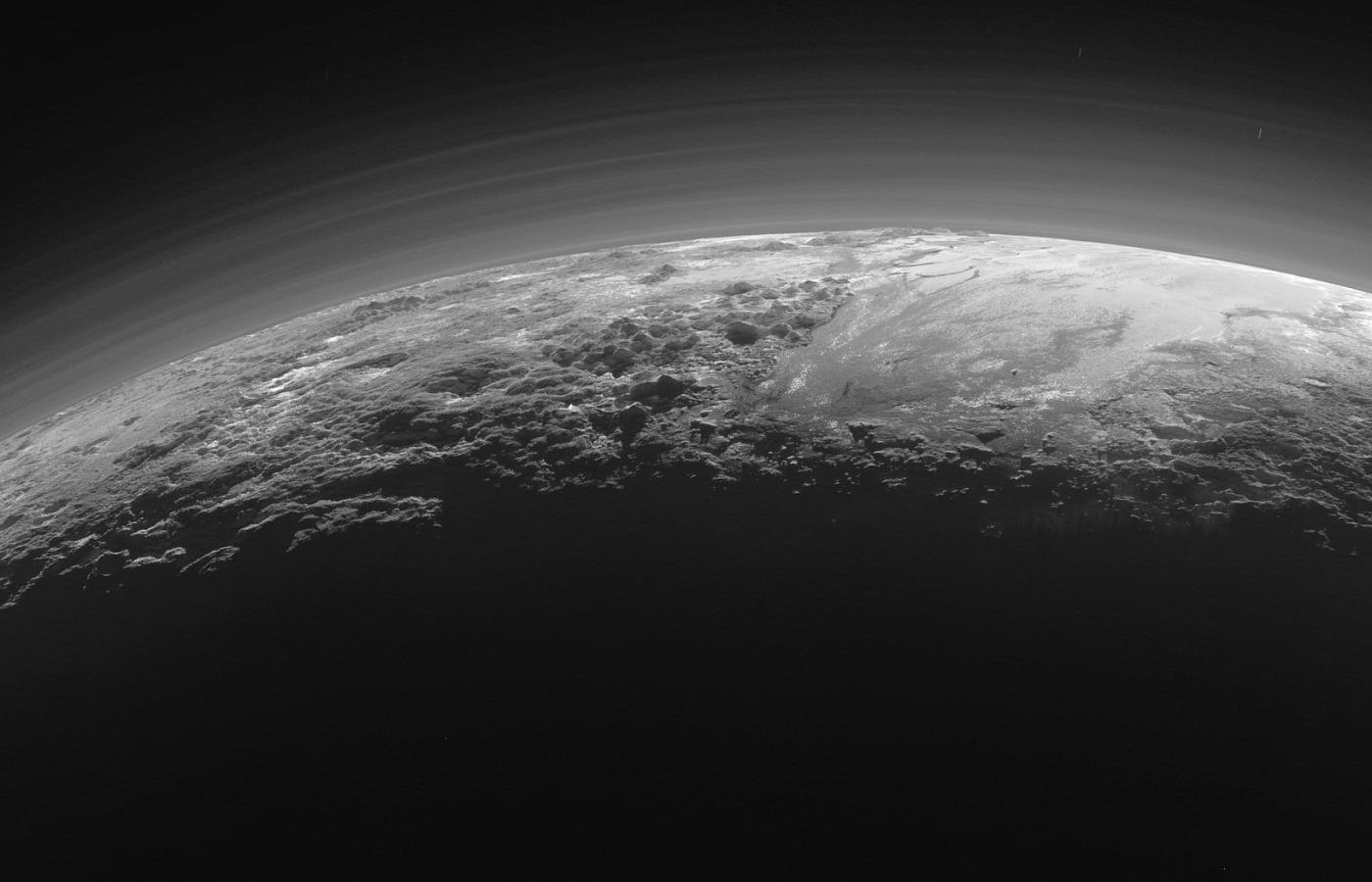 14 lipca tego roku New Hozizons przeleciała w odległości 12,5 tys. km od Plutona i wykonała wiele zdjęć, które będą teraz analizowane latami. 13 września centrum kontroli lotu sondy otrzymało zestaw dokładnych zdjęć ukazujących wybrany fragment powierzchni planety o średnicy ok. 1250 km. Zdjęcia te wprost zdumiały uczonych, ponieważ ukazują planetę pociętą pasmami gór, dolinami, lodowcami i migrującymi pod wpływem ruchów bardzo wysokiej, choć rozrzedzonej atmosfery, warstwami mgieł. Obrazy niezwykłego ukształtowania Plutona są jeszcze wzbogacone wyraźnym oddziaływaniem światła słonecznego oraz cieniami, które rzucają na powierzchnię szczyty i płaskowyże. Mgły układają się w dziesiątki warstw, z których najwyższe sięgają na wysokość 100 km nad powierzchnią. Wśród łańcuchów górskich i wzniesień tworzą się lodowce, bardzo przypominające te ziemskie z Grenlandii lub Antarktyki, tyle że nie są one zbudowane z lodu wodnego, lecz azotowego.