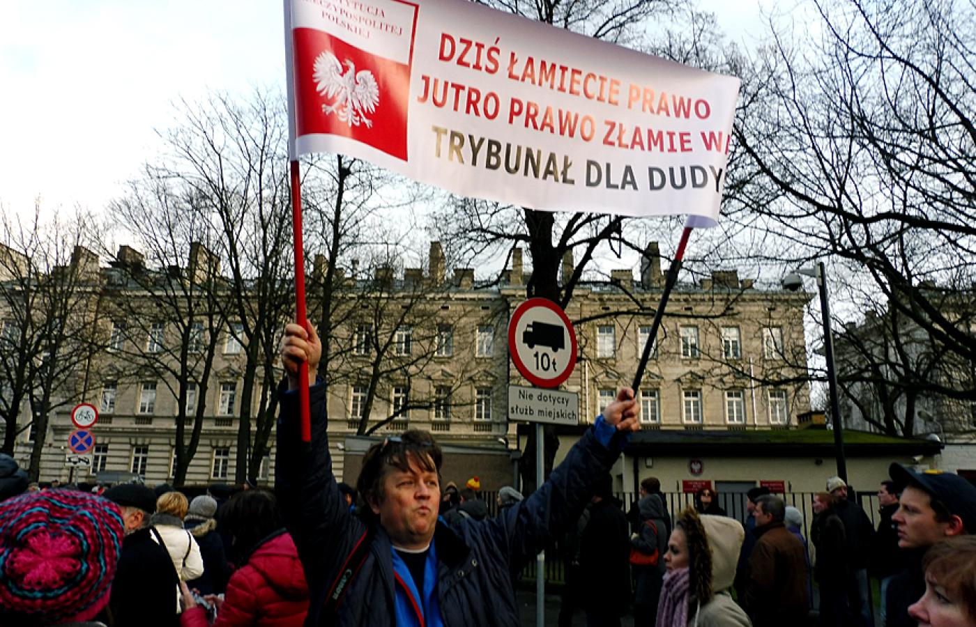 Tłum manifestował przed trzema miejscami symbolizującymi trójpodział władzy: siedzibą Trybunału Konstytucyjnego, Sejmem oraz Pałacem Prezydenckim. Demonstrujący skandowali hasła dedykowane przedstawicielom nowej władzy: „Obronimy konstytucjję”, „Andrzej Duda musi odejść”, „Jarosław, Polskę zostaw”, „Andrzej Duda przed Trybunał”, „Duda, Duda, to się nie uda”, „Chcemy prezydenta, nie namiestnika”, „Andrzej Duda to obłuda”, „Za pięć stów nas nie kupicie”, „Państwo prawa, nie prezesa”, „Przyjdzie pora na Kaczora”. A nawet: „Wyrwać Kempę z korzeniami” czy „Drukuj wyrok, Beata!”. Na początku demonstracji odśpiewano też hymn państwowy.