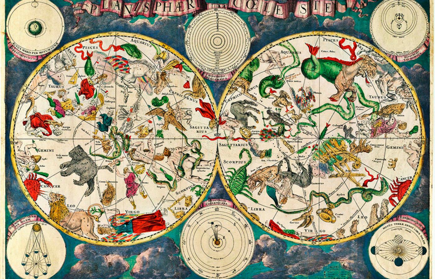 16 stycznia 2016 Galerie Ziemia i kosmos kiedyś i dziś 16 stycznia 2016 William Blake / Wikipedia Sprawa wydaje się prosta. Najpierw Ziemia była płaska, później Kopernik ruszył ją z miejsca. Dziś wiadomo już wszystko o wszystkim. Rzeczywistość wygląda jednak inaczej. Autor nieznany/Wikipedia Zarówno w starożytności, jak i w średniowieczu astronomia płynnie łączyła się z teologią i filozofią. Z drugiej jednak strony Demokryt z Abdery twierdził, że Ziemia nie jest jedyną planetą we wszechświecie, a w samym kosmosie nieustannie giną stare i rodzą się nowe światy. Pitagoras wysnuł śmiały wniosek dotyczący kulistości naszej planety na podstawie obserwacji cienia Ziemi podczas zaćmienia Księżyca. Poglądy te przetrwały i poza pewnymi wyjątkami obowiązywały aż do przewrotu kopernikańskiego. Wikipedia W średniowieczu tylko nieliczni myśliciele zgadzali się, że Ziemia jest płaska. Jednym z nich był Kosmas Indikopleustes żyjący w I połowie VI wieku. Kosmas twierdził, że Ziemia jest płaska, kwadratowa, otoczona oceanem i zamknięta w prostopadłościanie, nad którym (niczym hodowca nad terrarium) czuwa Bóg. Pośrodku znajdowała się Palestyna, jako Ziemia Święta, zaś na północy wznosiła się ogromna góra. Wszystkie ciała niebieskie okrążały Ziemię, ale nigdy nie schodziły pod nią, tylko kryły się za górą. Całość miała być poruszana na sferach obracanych przez specjalnych Aniołów. Wizja świata z Topographia Christiana (547 rok). Bartolomeu Velho/Wikipedia Pomimo opinii Kosmasa większość myślicieli średniowiecza opowiadała się za kulistością ziemi i jej centralnym miejscem we wszechświecie. Taki model nazywamy geocentrycznym i to właśnie za nim przemawiała większość cenionych średniowiecznych autorytetów. Galileusz, Kopernik i Kepler zakwestionowali sam fakt centralnego miejsca Ziemi w kosmosie, co oburzyło ówczesnych dostojników kościelnych, którzy tezę o miejscu Ziemi wywodzili z Biblii. Ilustracja autorstwa Bartolomeu Velho z 1568 roku. Andreas Cellarius/Wikipedia O ile Biblia nie wspominała bezpośrednio o kształcie Ziemi, to z całą pewnością oznaczała ją jako centrum wszechświata. Kopernik i Galileusz podważyli więc nie tyle naukową tezę, o ile teologiczne podstawy istnienia naszej planety. Ilustracja Andreasa Cellariusa z 1708 rok przedstawiająca model heliocentryczny. Thomasa Digges/Wikipedia Po jakimś czasie model kopernikański został zaakceptowany, jednak droga była długa i pełna zastrzeżeń. Tu obrazek Thomasa Diggesa, prezentujący układ kopernikański z gwiazdami „zawieszonymi” na jego brzegach. Frederik de Wit/Wikipedia Nova Orbis Tabula z „Lucem Edita” (1665) autorstwa Frederika de Wita – intensywne odkrycia geograficzne sprawiły, że Ziemia stawała się co raz lepiej znana i rozumiana, zaś z kartografii uczyniono prawdziwą sztukę. Wikipedia Oprócz map Ziemi powstawały mapy nieba odwołujące się do postaci mitologicznych. Mapa autorstwa Fredericka de Wita, Amsterdam 1680. Orlando Ferguson/Wikipedia Podobnie jak w średniowieczu, w nowożytności też znalazły się jednostki, które wątpiły nie tylko w odkrycia Kopernika, ale też w idee okrągłej Ziemi w ogóle. Koncepcję płaskiej Ziemi ponownie powołał do życia Birley Rowbotham, który twierdził, iż Biblię należy rozumieć dosłownie. Idąc jego tropem, Orlando Ferguson stworzył mapę ukazującą prawdziwy (jego zdaniem) obraz Ziemi. Ferguson szerzył swoją teorię na całe Stany, a oprócz prezentacji mapy występował z 92-stronicowym wykładem, udowadniając swoje tezy. Sue Clark/Flickr CC by 2.0 Model kopernikański został poprawiony przez Johannesa Keplera, który stwierdził między innymi, że orbity planet mają kształt elips, a planety poruszają się po orbitach ze zmienną prędkością. NASA's Marshall Space Flight Center/NASA XX wiek był okresem intensywnej eksploracji kosmosu, z setkami zdjęć wykonanymi przez NASA i największe światowe teleskopy. Jednak ogrom przestrzeni, która dzieli pojedyncze ciała w kosmosie, sprawił, że oddanie naszej wizji wszechświata na jednej ilustracji okazało się niemożliwe. Pablo Carlos Budassi/Wikipedia Używając zdjęć NASA oraz map logarytmicznych uniwersytetu Princeton, Pablo Carlos Budassi stworzył mapę całego znanego kosmosu. Nie pokazuje ona jednak przestrzeni w wersji liniowej. Każdy kolejny fragment pokazuje przestrzeń wielokrotnie większą od poprzedniego. Dlatego na zdjęciu planety wydają się mieć tę samą wielkość co galaktyki. eksploracja Kosmosu Ziemia