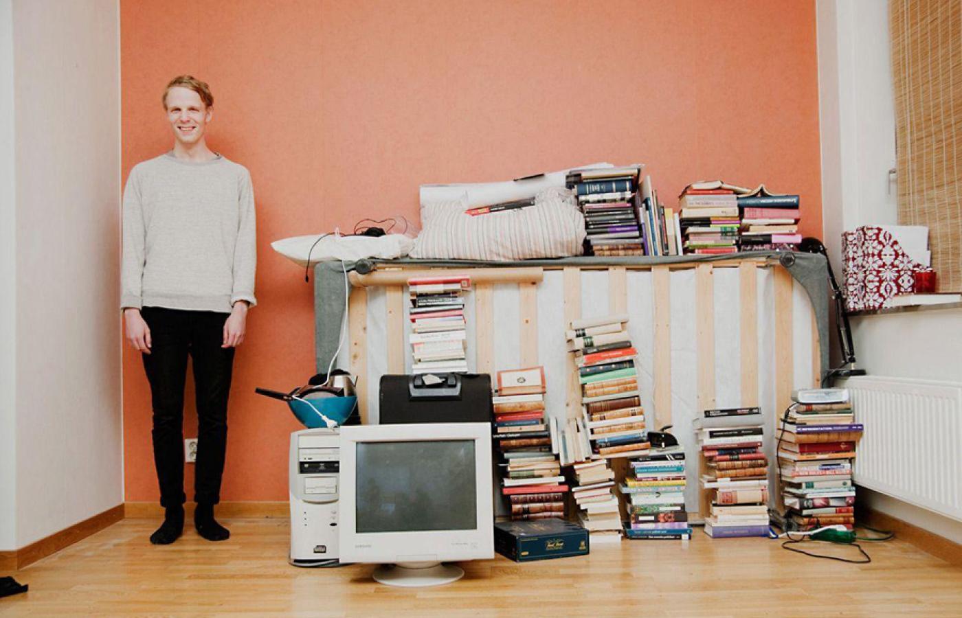 … a jeśli nie cały, to przynajmniej to, co wydaje się najważniejsze. Choć celem eksperymentu fotograficznego Szwedki Sannah Kvist (pod wymowną nazwą „All I Own”) było akurat pomieszczenie wszystkich posiadanych rzeczy w jak najmniejszej przestrzeni. Kvist obfotografowała tak swoich przyjaciół, poproszonych o ułożenie ze swoich rzeczy osobliwych rzeźb, gór ubrań, mebli, kolekcji książek, płyt. Wszyscy jej bohaterowie urodzili się w latach 80. Być może zbiory starszych lub młodszych pokoleń wyglądałyby inaczej.