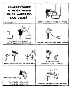 Przygotowania do festiwalu i inne towarzyszące mu okoliczności na bieżąco komentuje Jacek Świdziński, twórca komiksów, ilustrator. Oto jego prace!