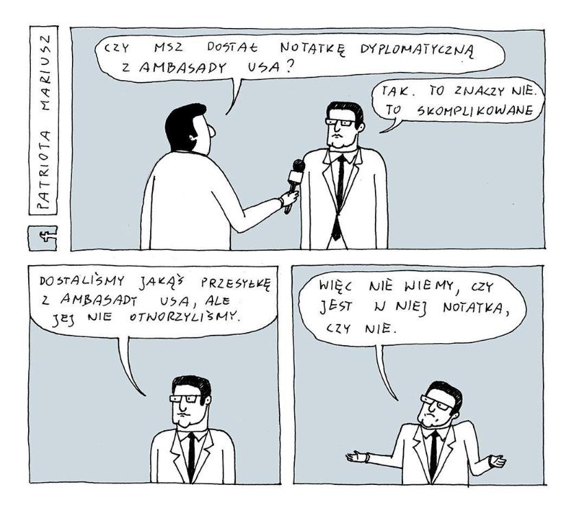 Komentuje zarówno te ważniejsze, jak i zupełnie nieistotne wydarzenia z kraju.