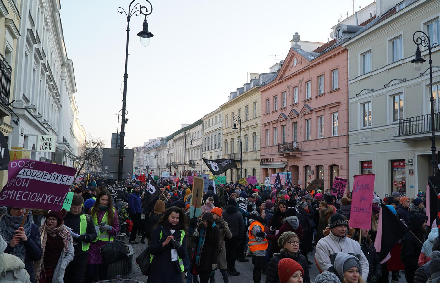 Dlaczego Porozumienie Kobiet 8 Marca wybrało hasło „Aborcja nie policja” na swoje tegoroczne demonstracje? Po pierwsze, z powodu 25. rocznicy wprowadzenia w Polsce zakazu aborcji (poza trzema szczególnymi przypadkami). „Przez te wszystkie lata, które upłynęły od wprowadzenia zakazu, my nadal przerywamy ciąże. Potrafimy się wspierać i pomagać sobie w organizacji zabiegów w prywatnych gabinetach, zbieramy na nie pieniądze, zamawiamy leki na wywołanie poronienia – twierdzą organizatorki. – Wszystko w atmosferze lęku, że ktoś nas przyłapie”. Po drugie, z powodu represji policji wobec osób protestujących na ulicach. Oto jak wyglądał tegoroczny przemarsz.