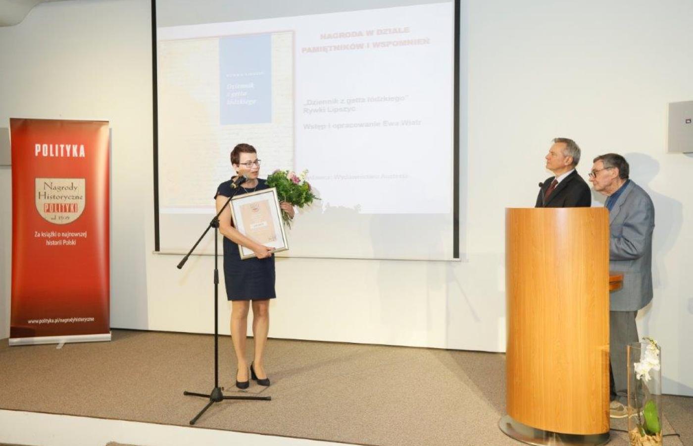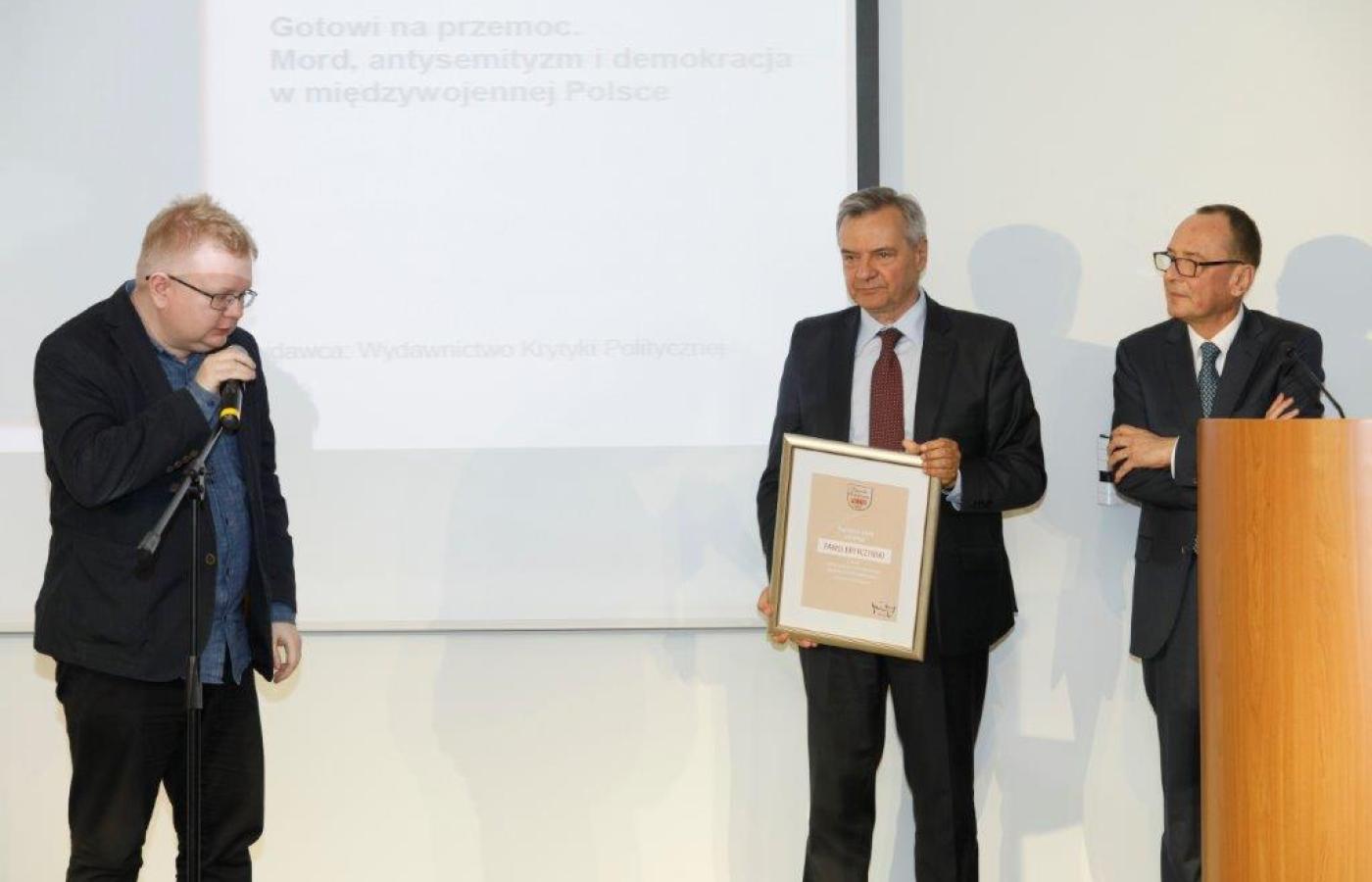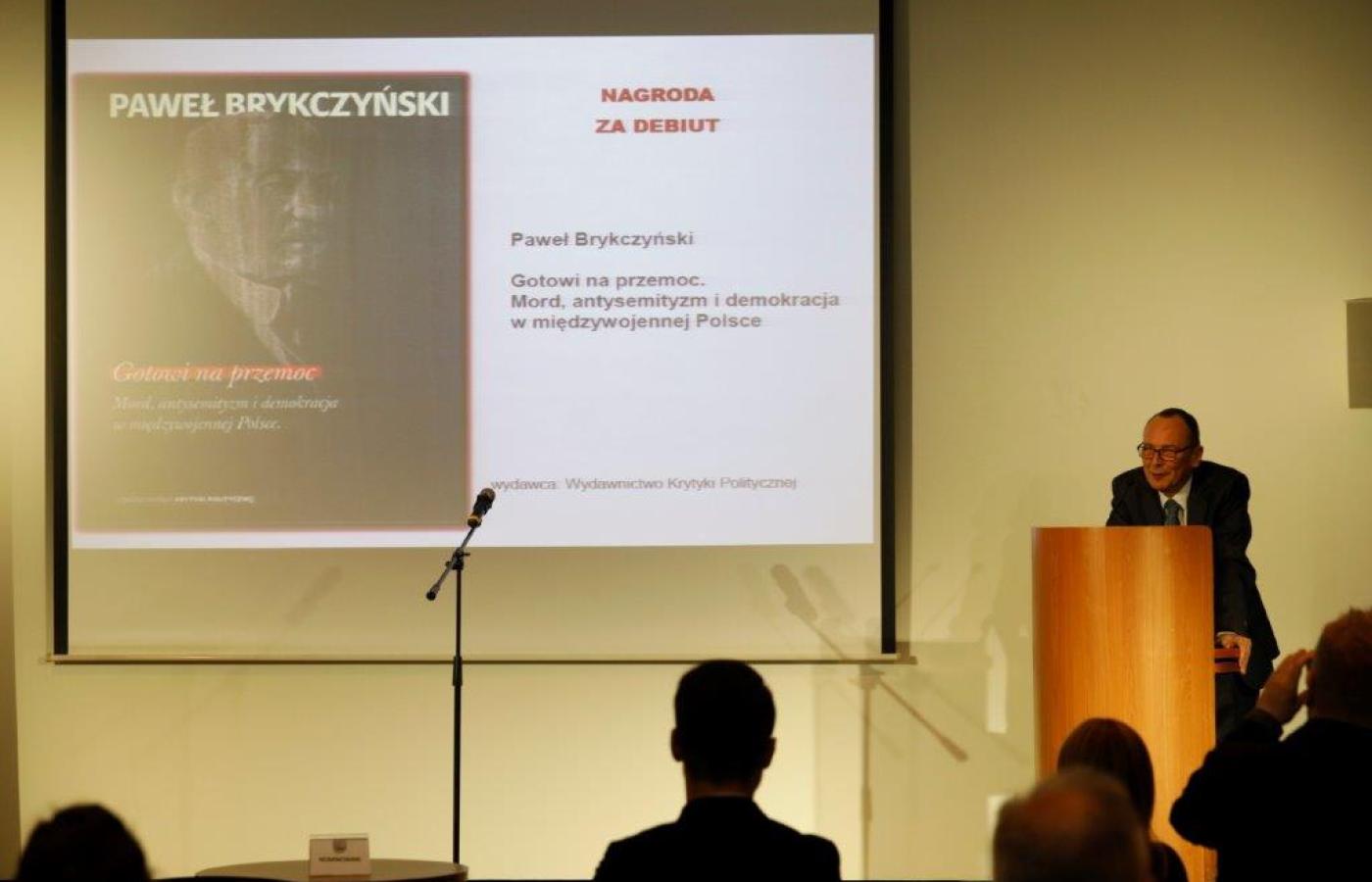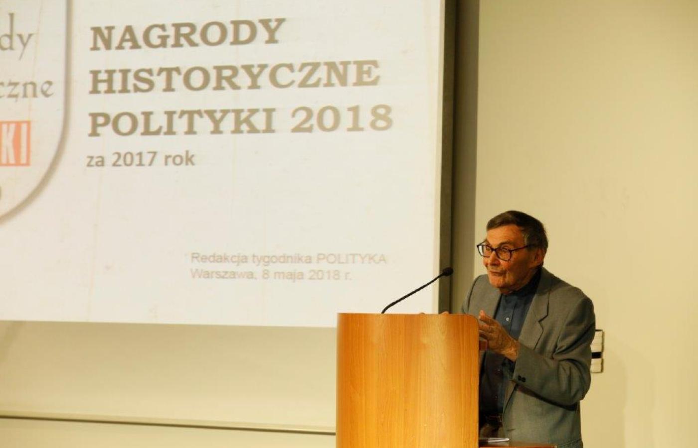9 maja 2018 Galerie Wręczyliśmy Nagrody Historyczne 2018! 9 maja 2018 Zadowoleni laureaci wśród równie zadowolonych jurorów. Od lewej: Dariusz Stola, Jerzy Kochanowski, Włodzimierz Borodziej, Ewa Wiatr, Michal Sutowski, Marian Turski, Marcin Zaremba. Leszek Zych / Polityka Nagrody Historyczne za książki o najnowszej historii Polski wydane w 2017 roku zostały wręczone 8 maja w redakcji naszego tygodnika. Leszek Zych/Polityka Marian Turski, przewodniczący Jury, wyjaśnia zawiłości prac Kapituły. Leszek Zych/Polityka Prof. Jerzy Kochanowski już po raz drugi odbiera Nagrodę Historyczną POLITYKI, tym razem za książkę „Rewolucja międzypaździernikowa”. Leszek Zych/Polityka Prof. Włodzimierz Borodziej wygłasza laudację na cześć najlepszego debiutanta – Pawła Brykczyńskiego. Leszek Zych/Polityka W imieniu Pawła Brykczyńskiego dyplom z rąk redaktora naczelnego POLITYKI Jerzego Baczyńskiego odebrał Michał Sutowski z Krytyki Politycznej, tłumacz nagrodzonej książki. Leszek Zych/Polityka Ewa Wiatr opowiada o książce nagrodzonej w kategorii „Pamiętniki i wspomnienia”. Leszek Zych/Polityka „Pamiątkowe” zdjęcie Ewy Wiatr z przewodniczącym jury. Nagrody Historyczne